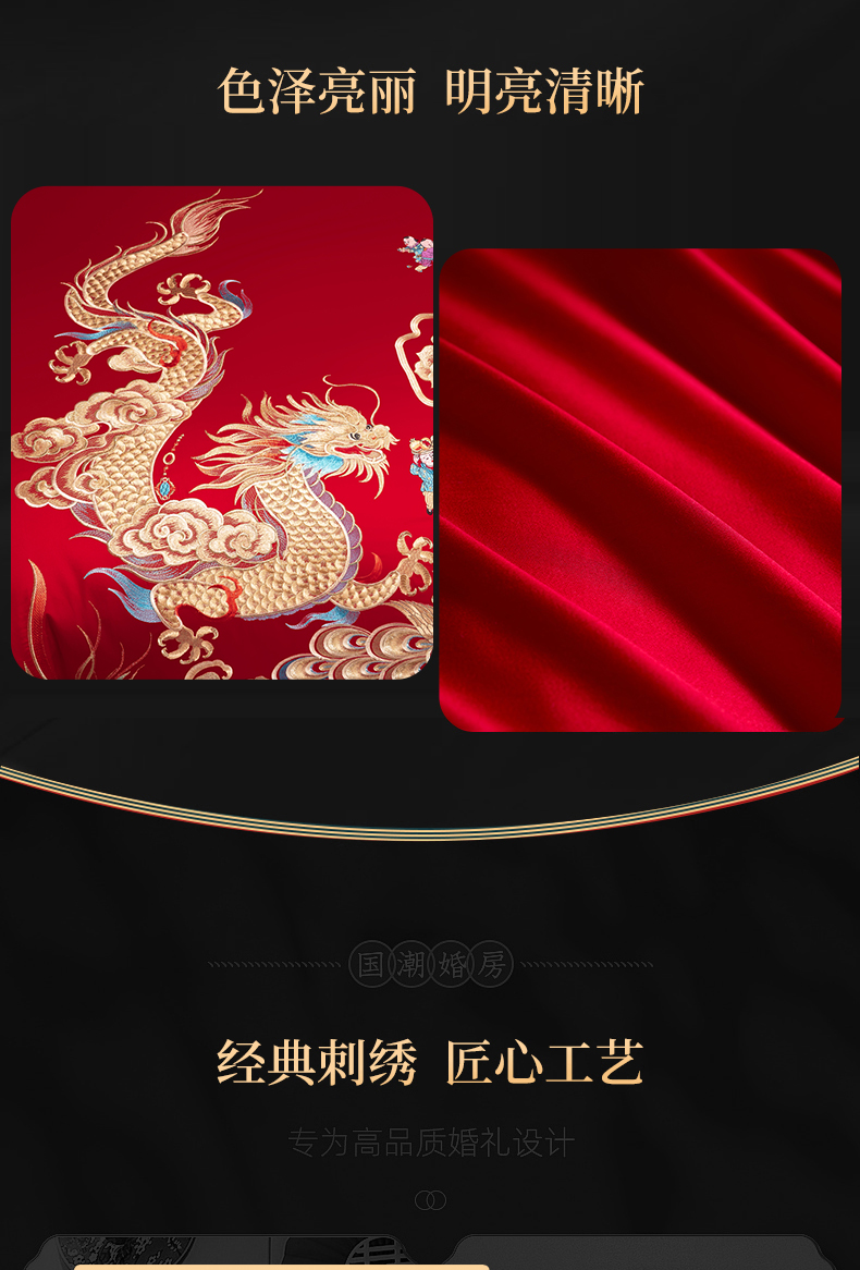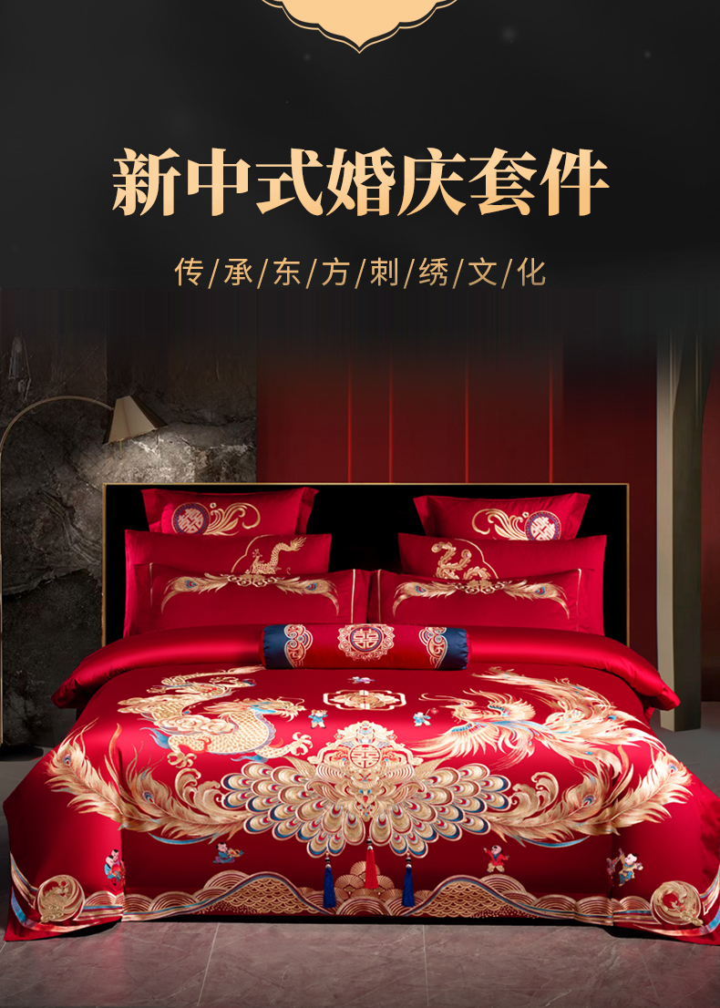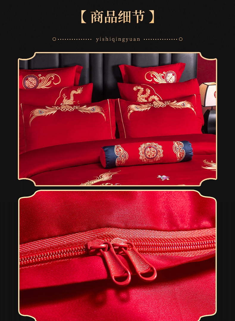 当前位置: 91家纺网 > 商品网购 > 床品套件 > 四件套 > 婚庆四件套 > 慕她家纺 2026年全棉纯棉婚庆四件套大红色刺绣结床上用品 御赐婚礼