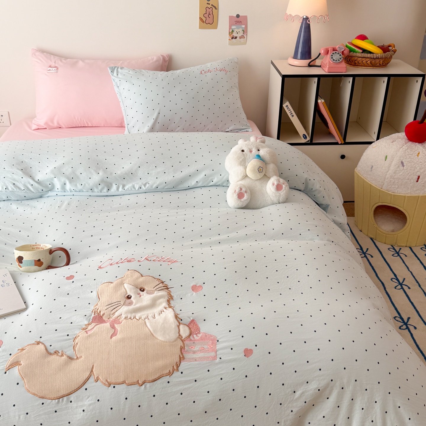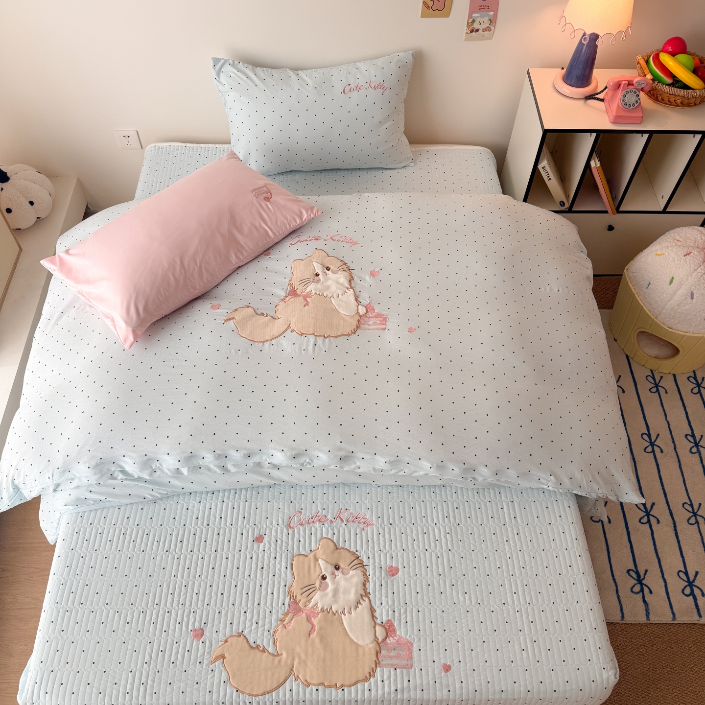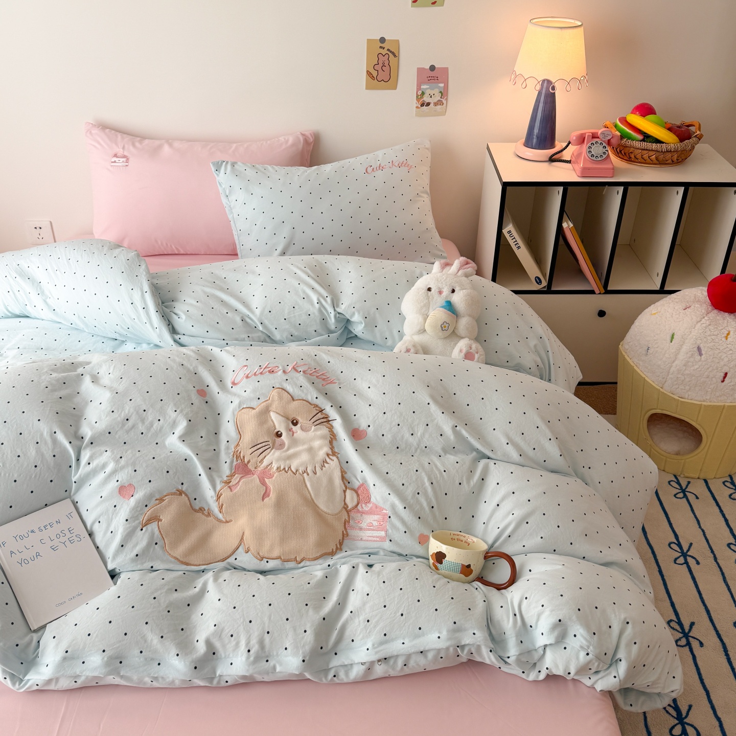 商品名称:吾欢心 2026春夏新款水洗棉床盖款四件套夏被四件套 蛋糕猫酱