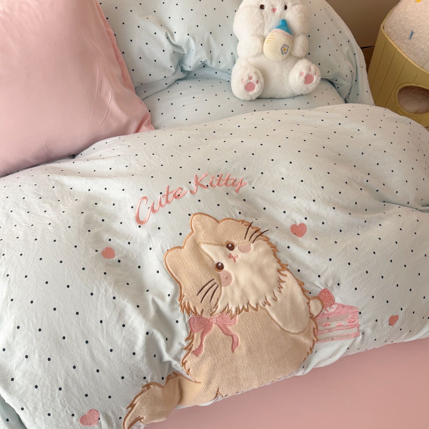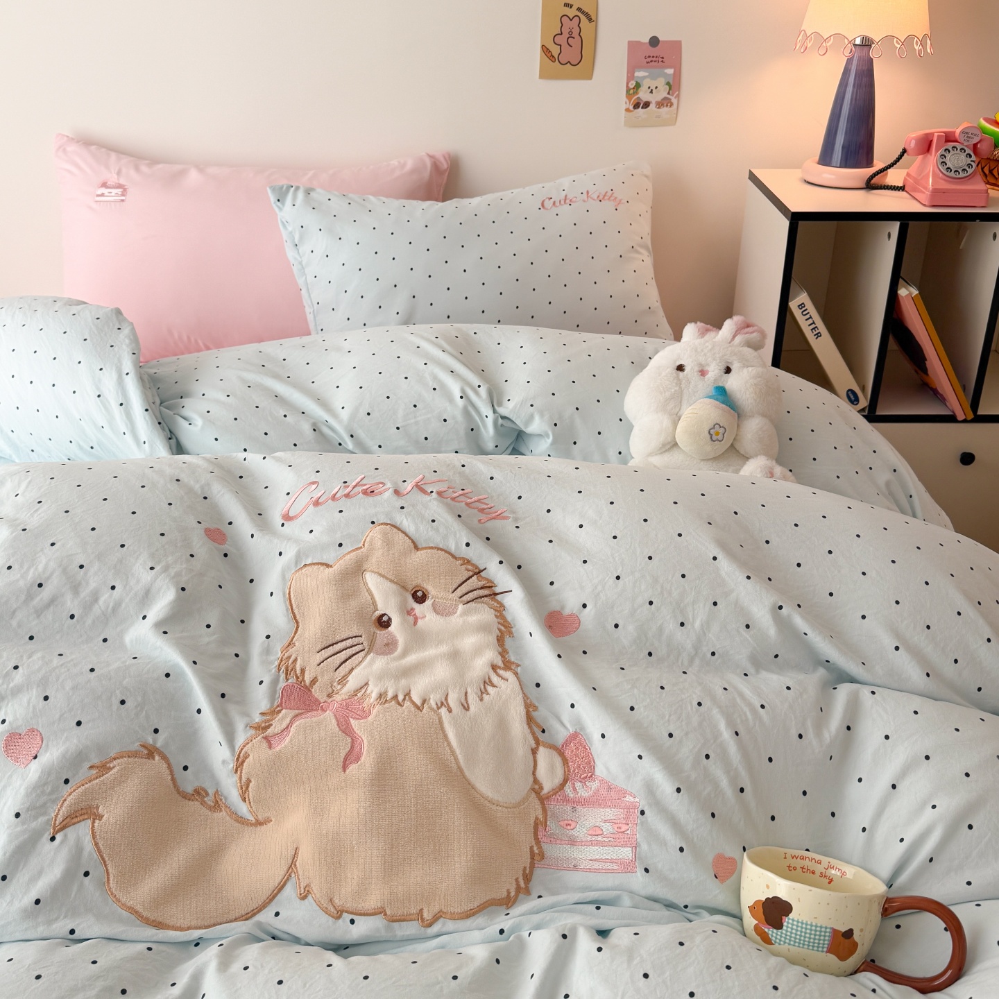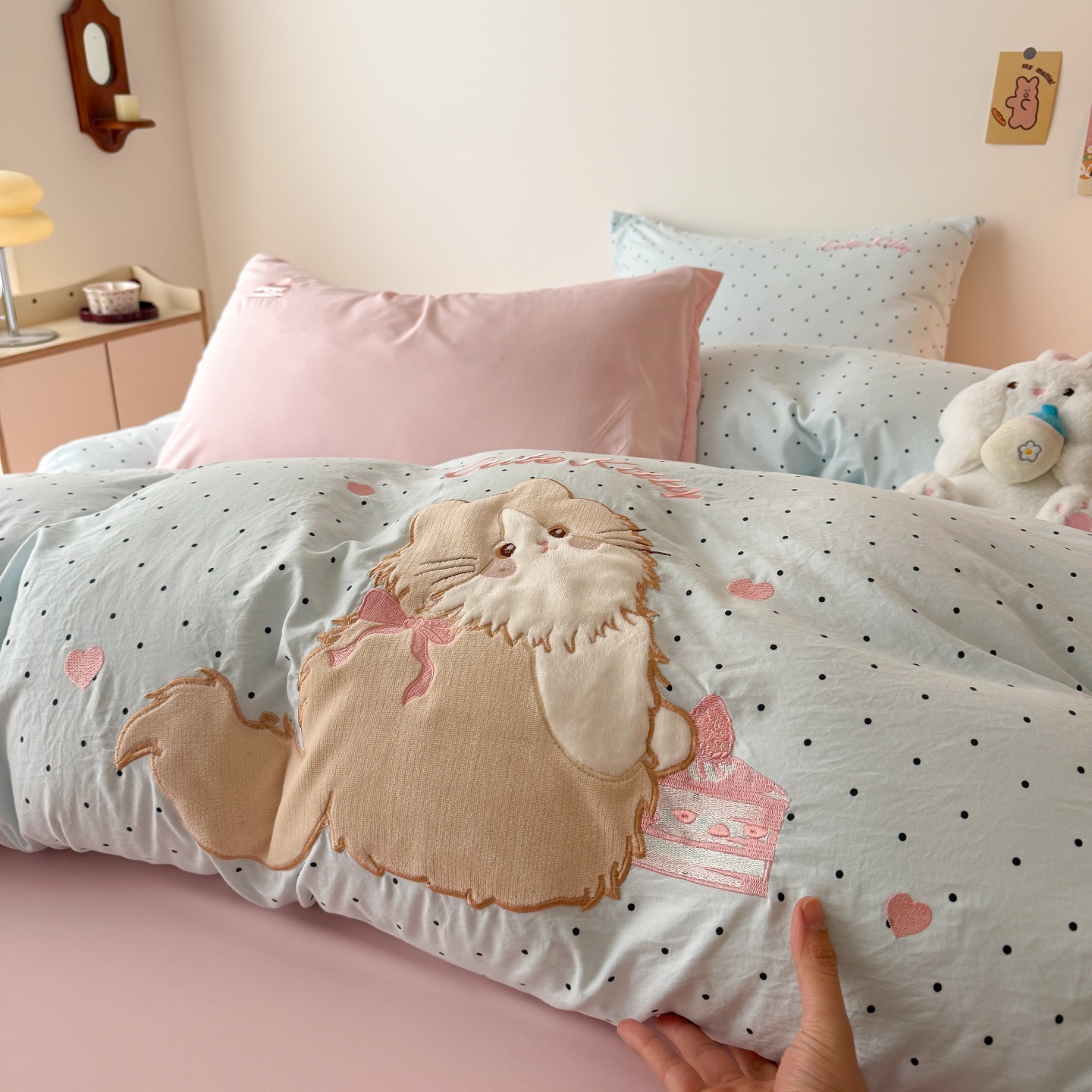 商品名称:吾欢心 2026春夏新款水洗棉床盖款四件套夏被四件套 蛋糕猫酱