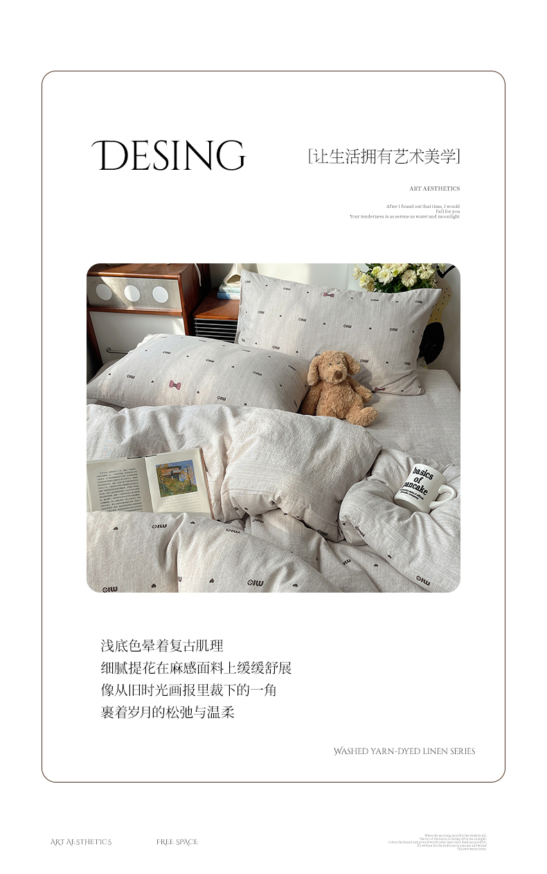 当前位置: 91家纺网 > 商品网购 > 床品套件 > 四件套 > 其它四件套 > 凯洛奇 2026新款色织麻水洗提花四件套-提供买家秀 灰蝶心韵