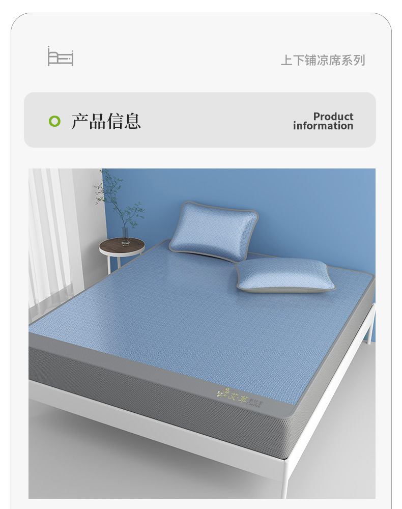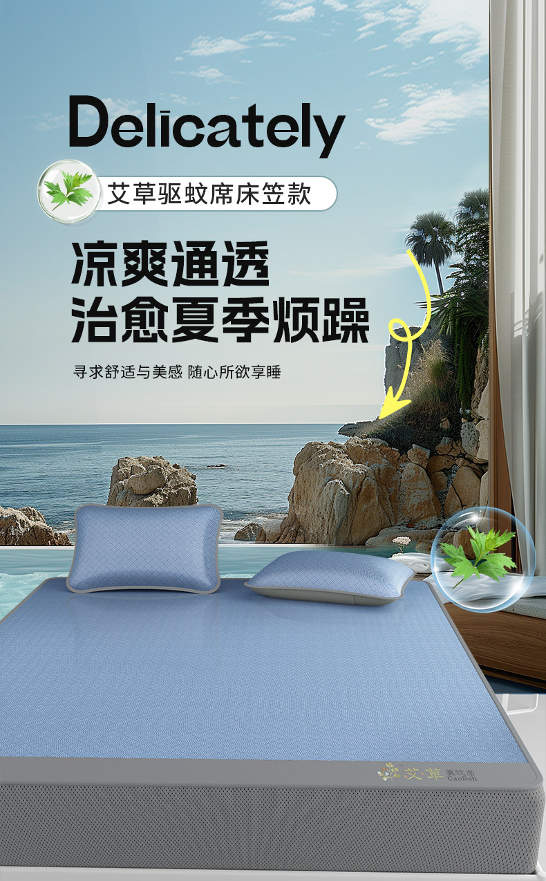 • 91家纺网 家纺一手货源 找家纺 福来临家纺 2026新款舒适亲肤凉感艾草驱蚊席-床笠款 艾草驱蚊席-蓝床笠款
