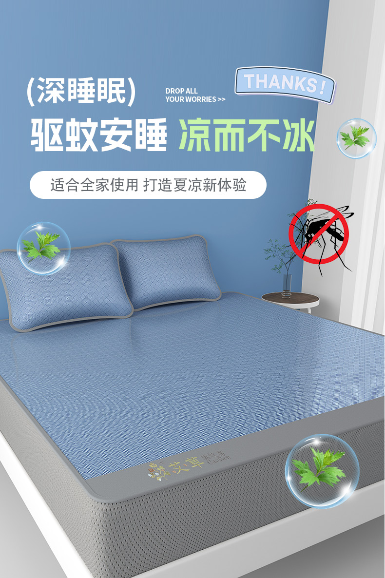 福来临家纺 2026新款舒适亲肤凉感艾草驱蚊席-床笠款 艾草驱蚊席-蓝床笠款