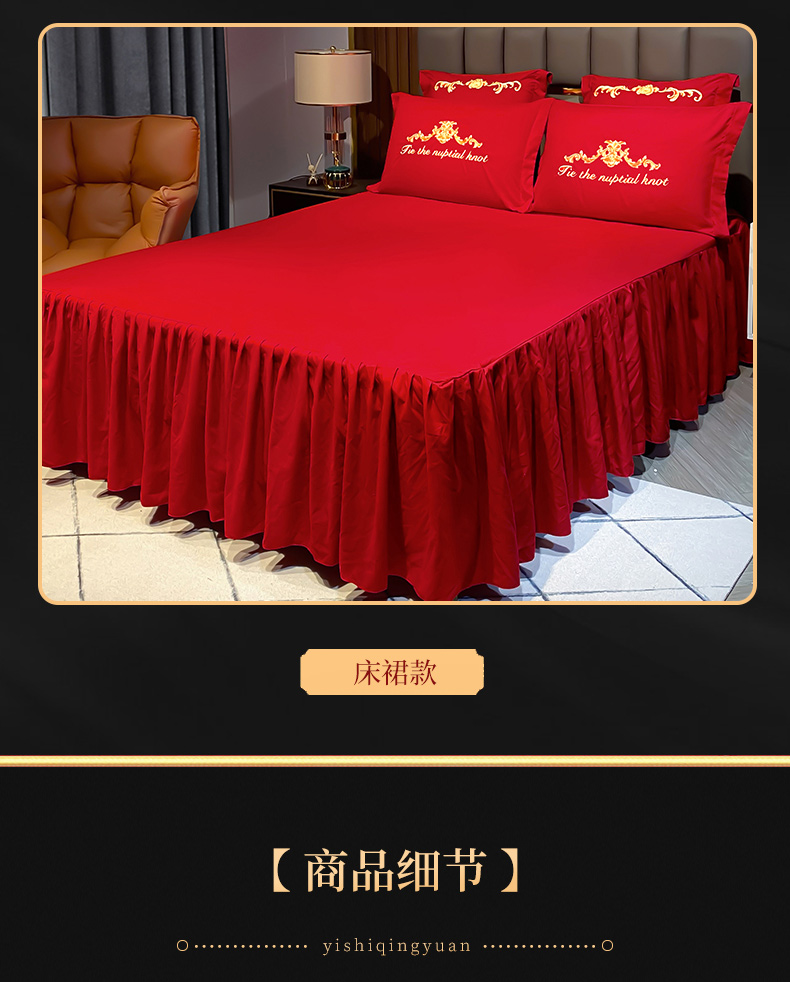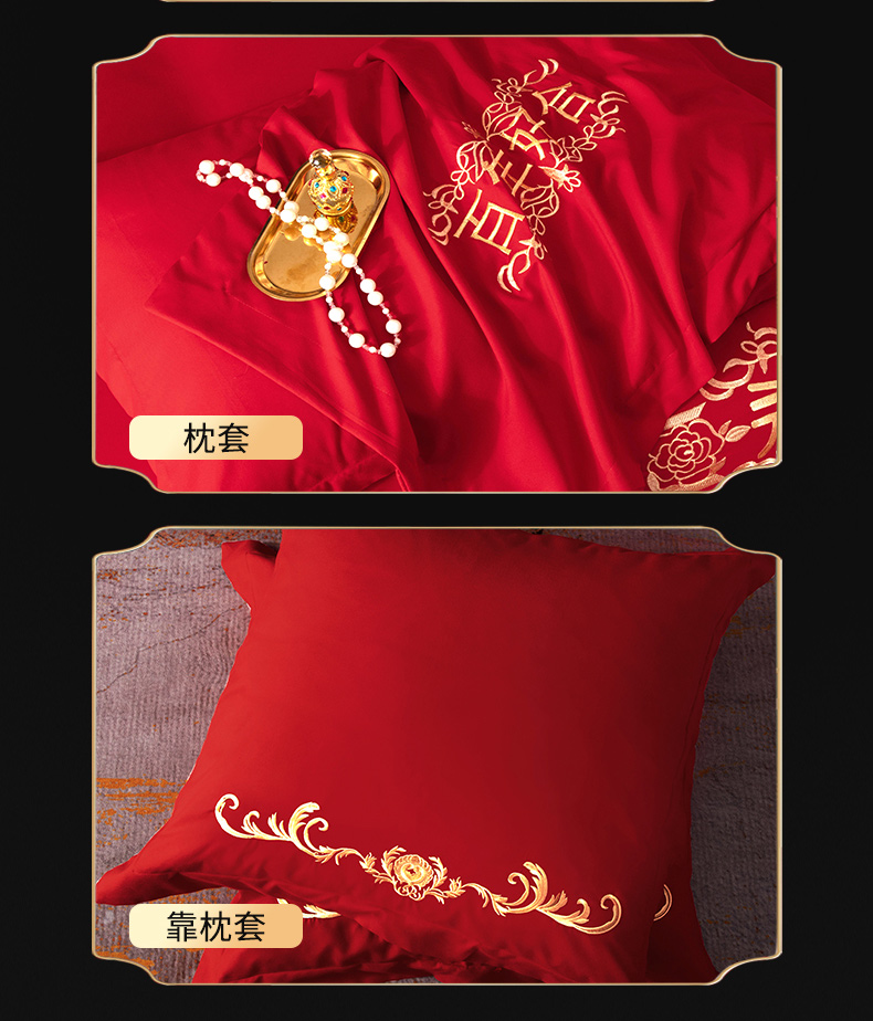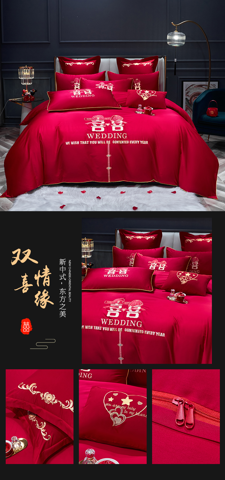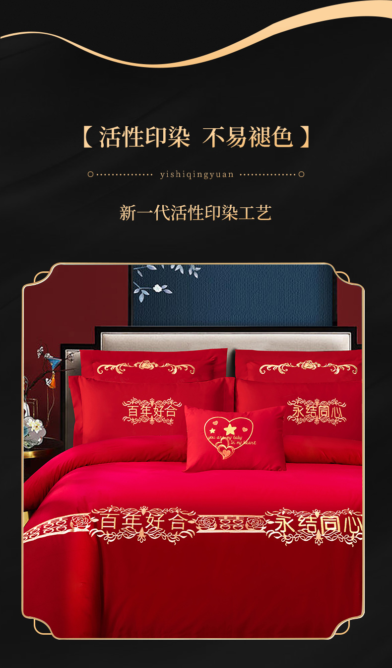 当前位置: 91家纺网 > 商品网购 > 床品套件 > 四件套 > 婚庆四件套 > 慕她家纺 2026年磨毛亲肤棉婚庆四件套大红色刺绣结床上用品 百年同心