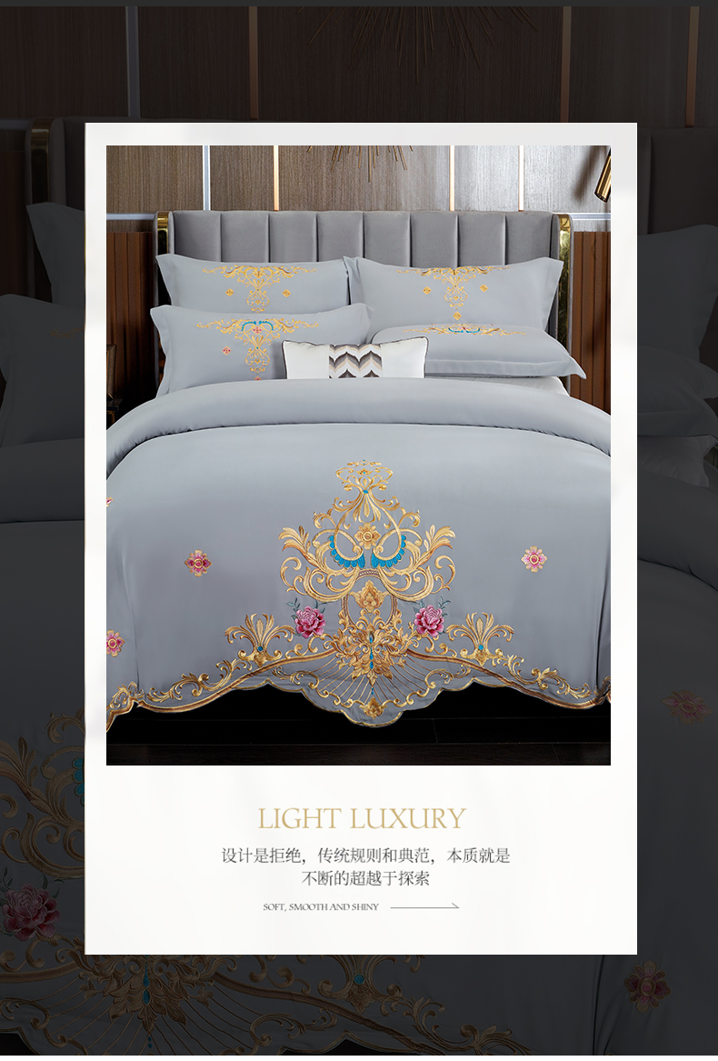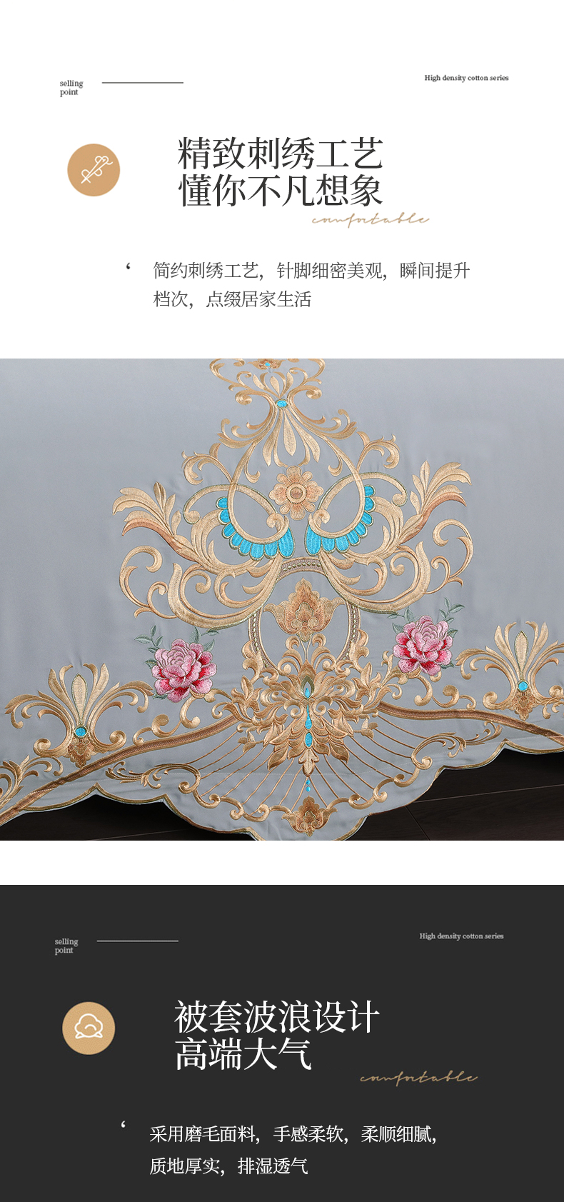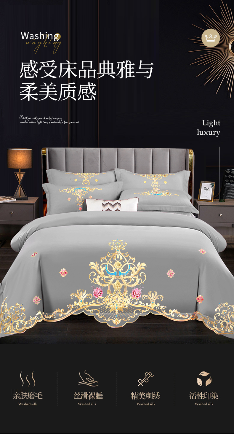 当前位置: 91家纺网 > 商品网购 > 床品套件 > 四件套 > 婚庆四件套 > 慕她家纺 2026年磨毛亲肤棉婚庆四件套大红色刺绣结床上用品 盛世庄园 经典灰