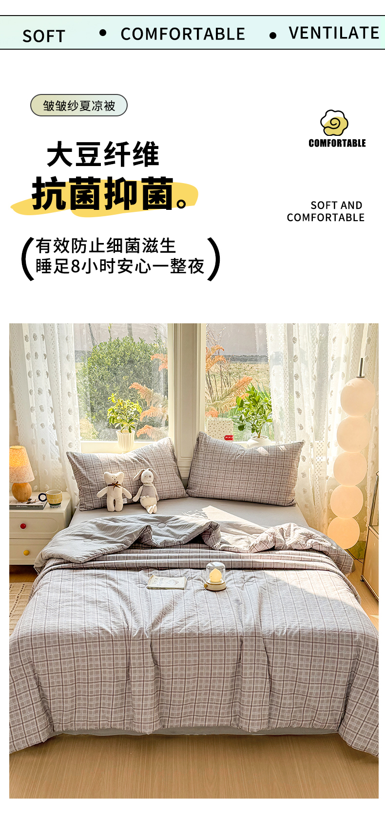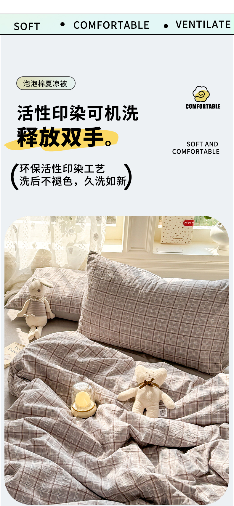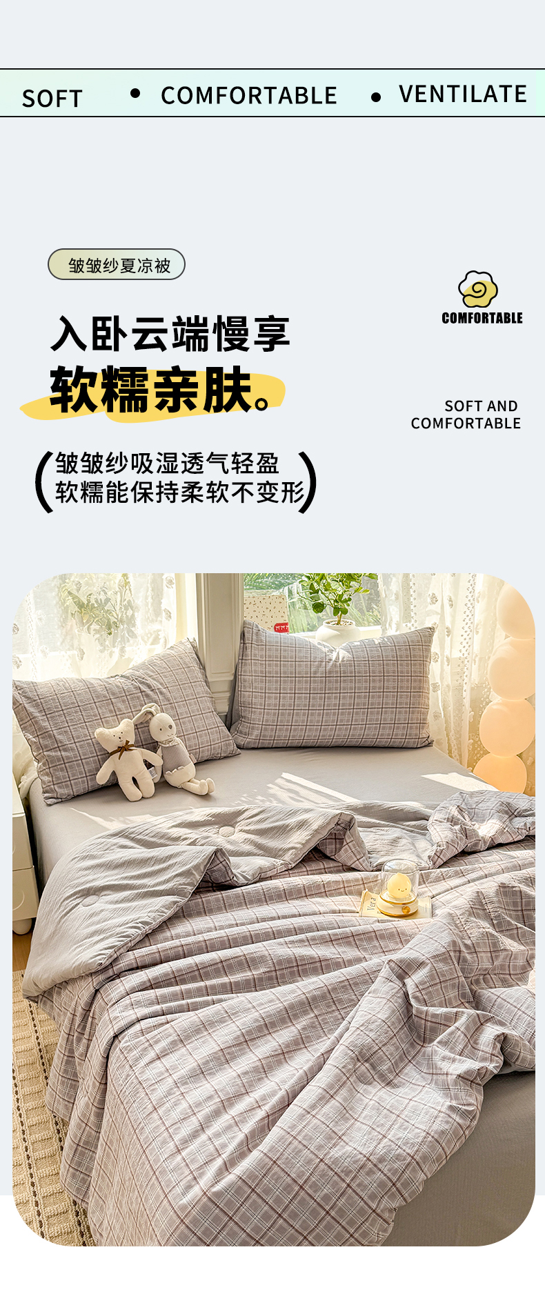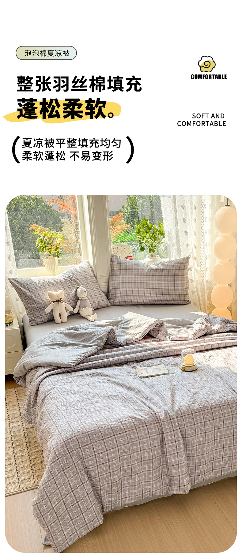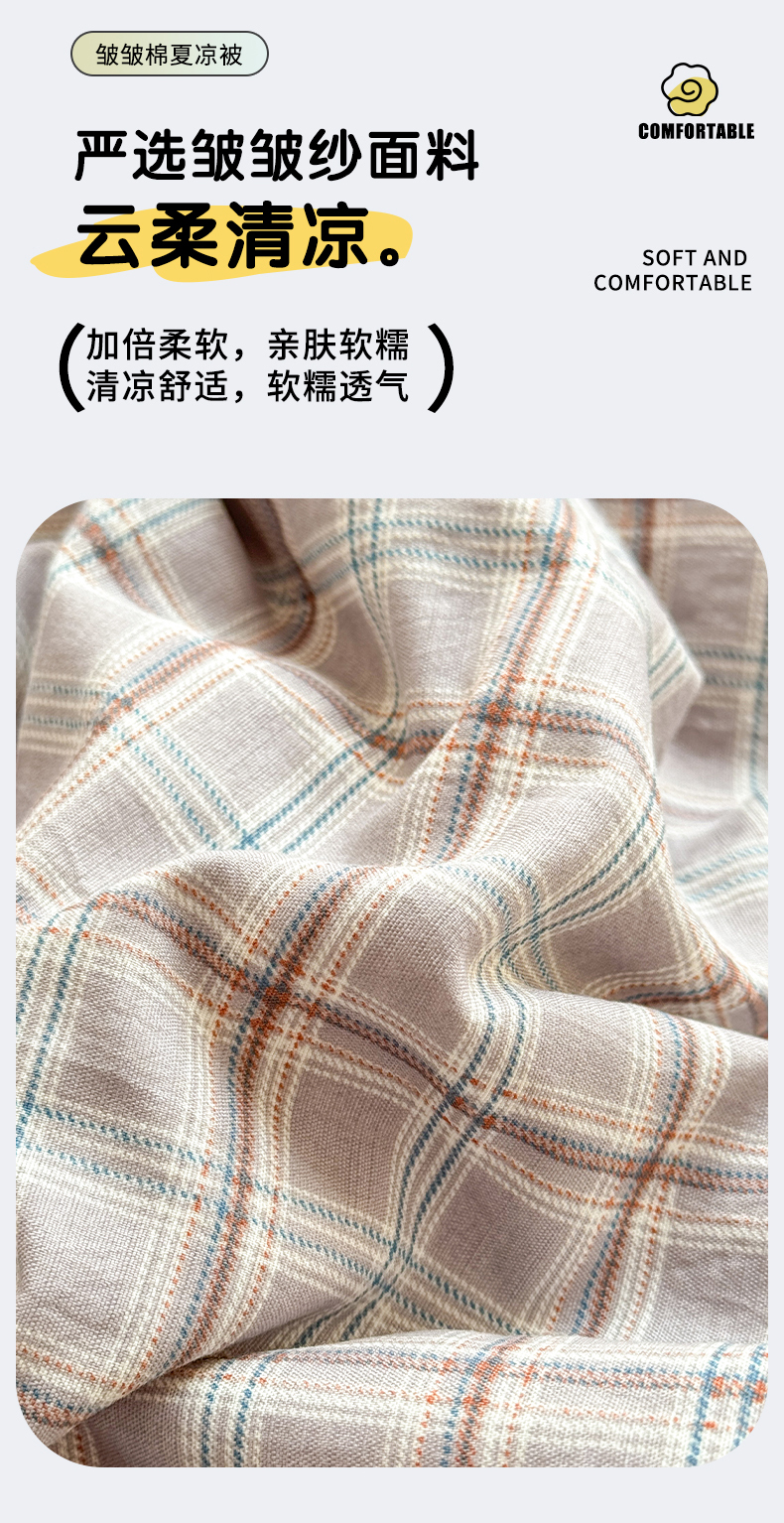 丽美人家纺 2026春夏新款简单款皱皱纱夏被夏凉被空调被 布兰卡