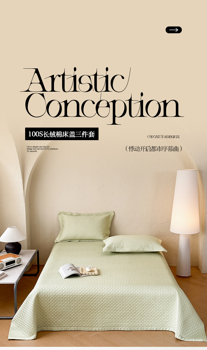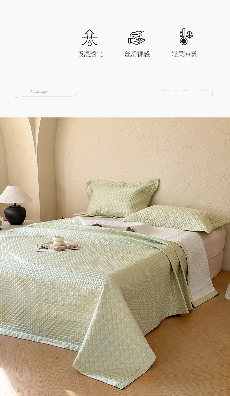 (总)法芙娜家纺 2026新款100S长绒棉床盖三件套,绿,米黄,浅粉,浅灰,深粉,深灰