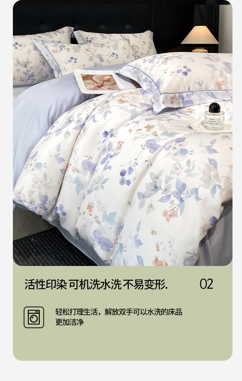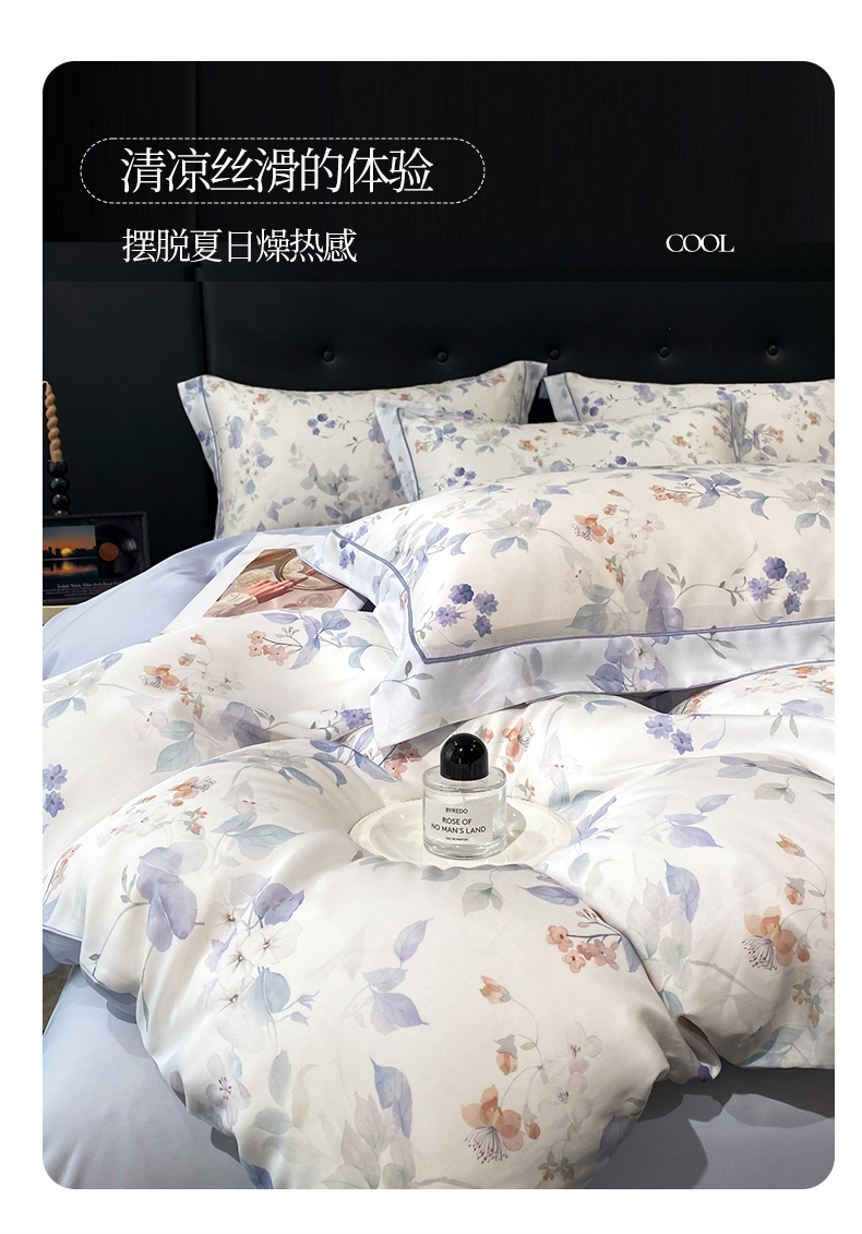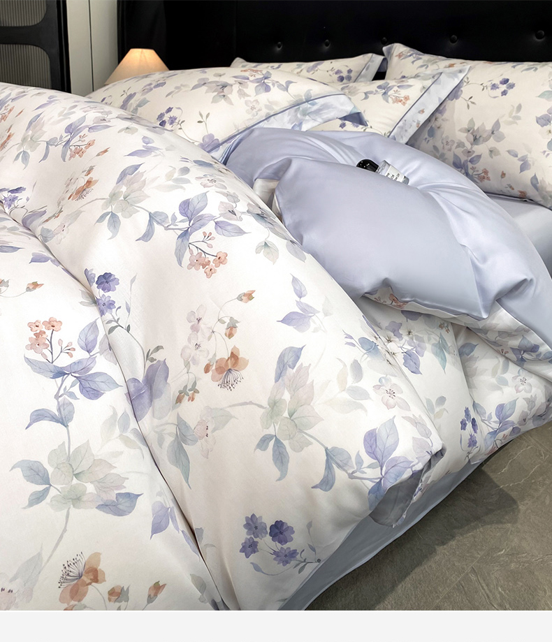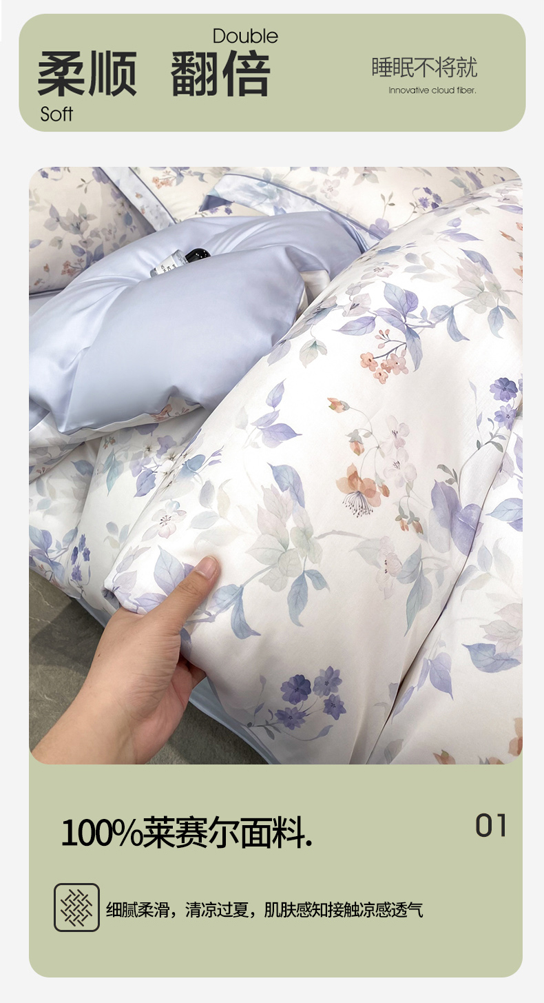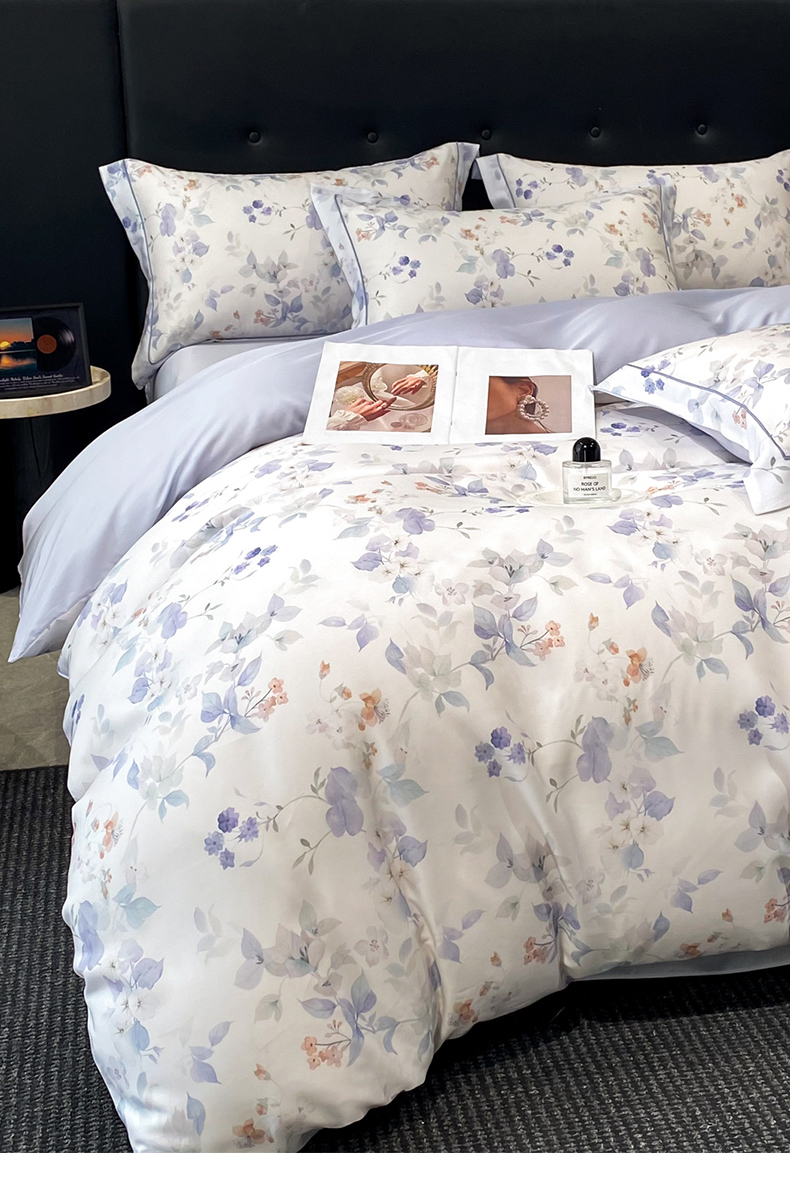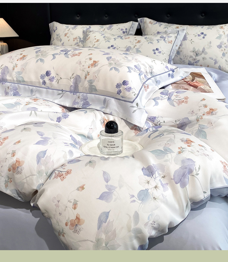 (总)启航家居 2026新款春夏天丝莱赛尔数码印花四件套,花颜外兰,半纸叶灰,池禾韵兰,春溢然兰,春溢然绿,花颜外粉,花园派对沙色,梦境之翼兰,梦境之翼绿,烟花间粉,烟花间绿,樱岛春漫粉,云间素语绿,云间素语紫,早春的树蓝,早春的树紫,栀花语粉,紫陌紫