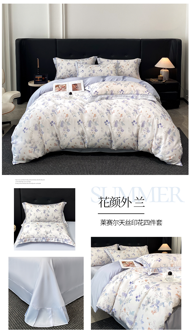 商品名称:启航家居 2026新款春夏天丝莱赛尔数码印花四件套 花颜外兰
