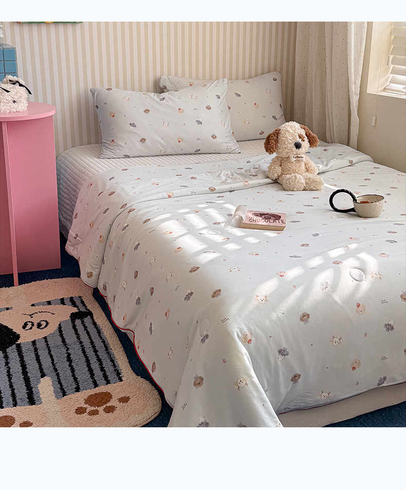 (总)暖生活 2026新款A类牛奶针织棉夏被被子被芯,小小狗,白夜蔷薇,缤纷小马,草莓小宠,花信驿,蓝豹纹KT,两只兔子,巧克力熊,小兔拼图,熊猫吐司,野餐聚会,宇宙恐龙,月光森林,组合图仅供参考