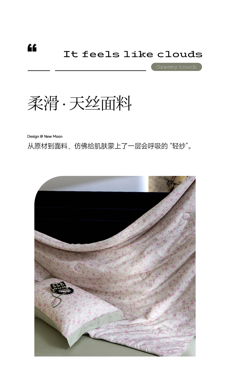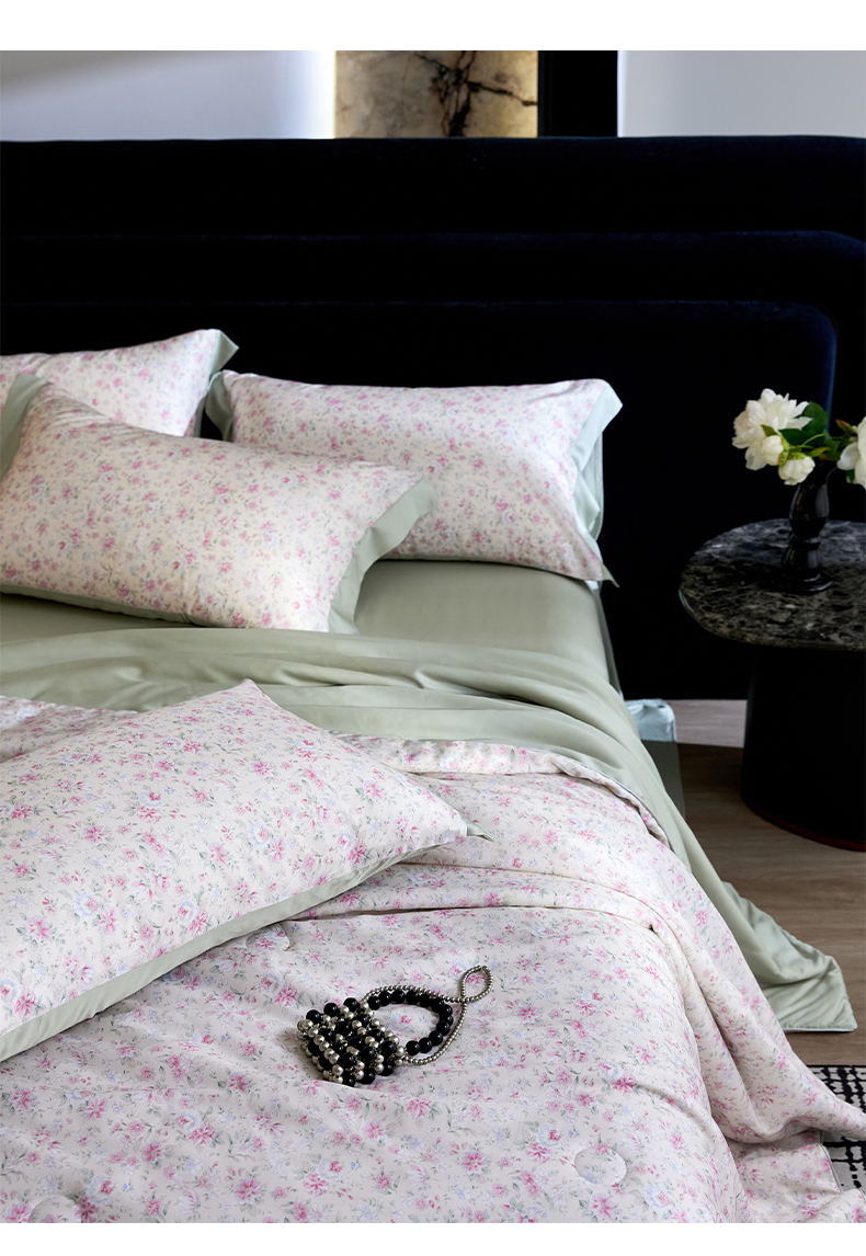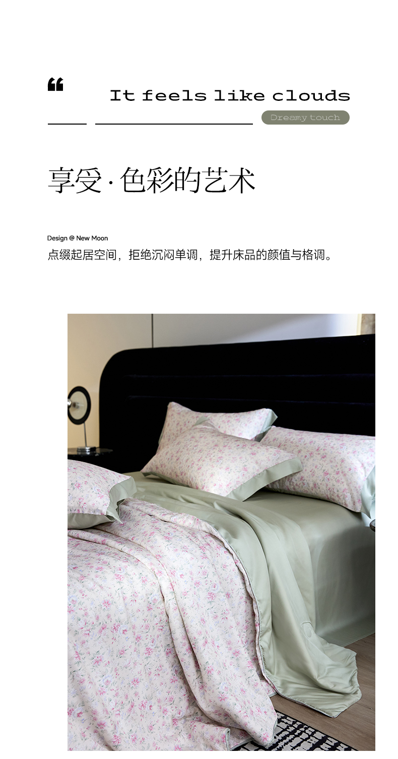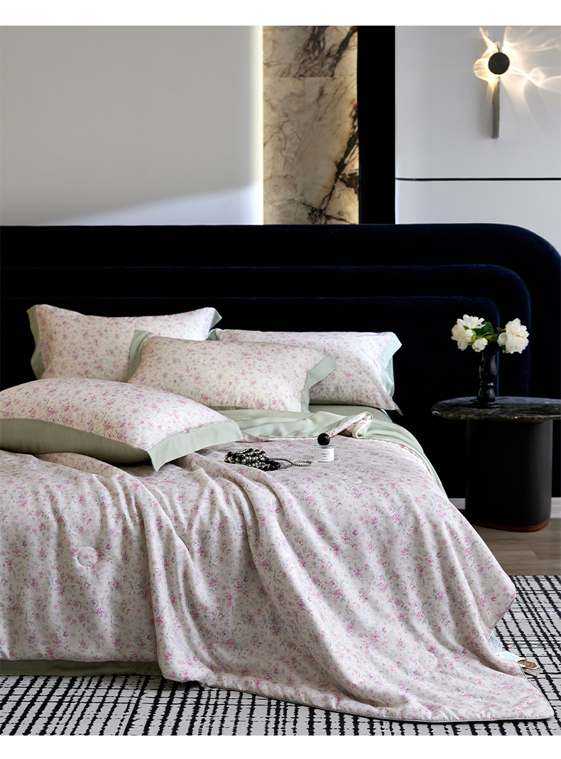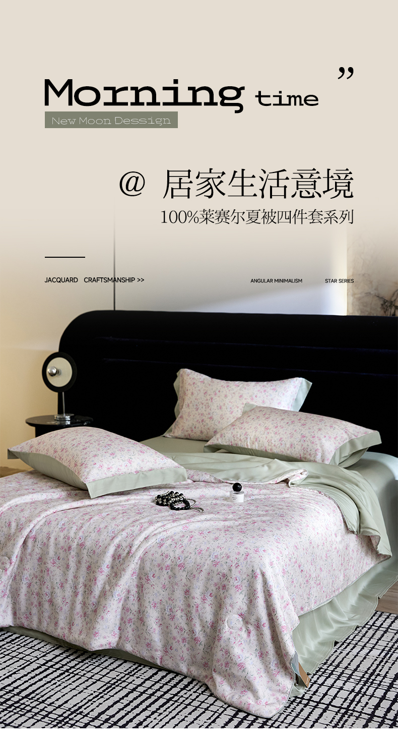 • 91家纺网 家纺一手货源 找家纺 慕梵家居 2026春夏新款100%莱赛尔天丝夏被空调被夏凉被四件套 诗序