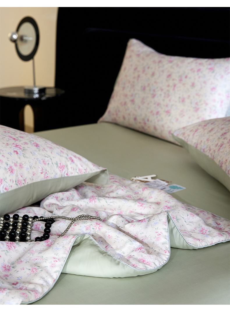 当前位置: 91家纺网 > 商品网购 > 被子 > 夏被 > 慕梵家居 2026春夏新款100%莱赛尔天丝夏被空调被夏凉被四件套 诗序