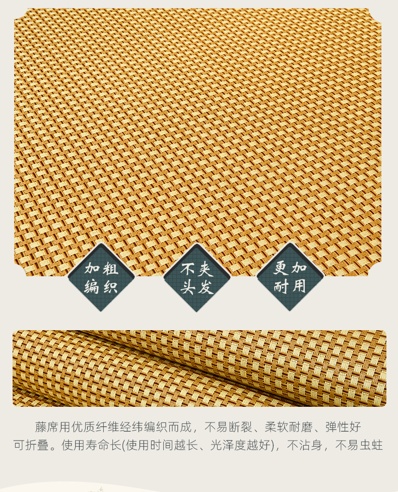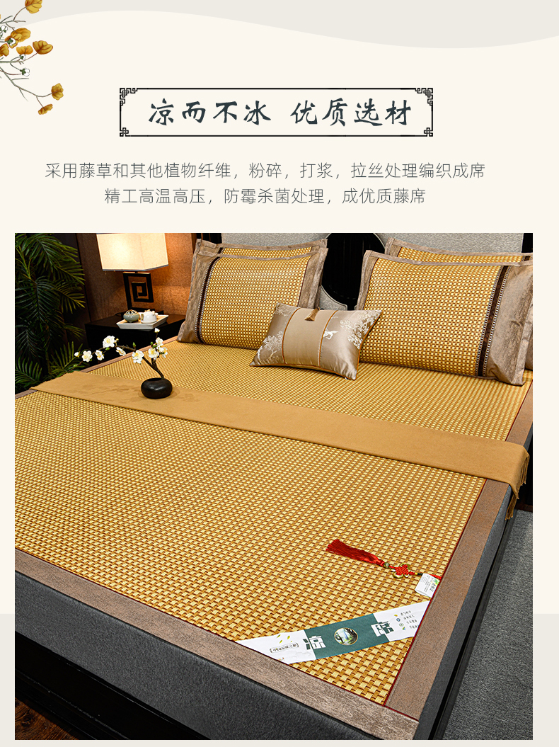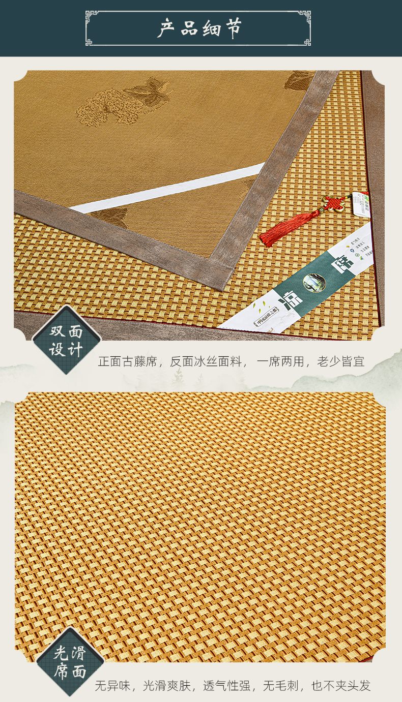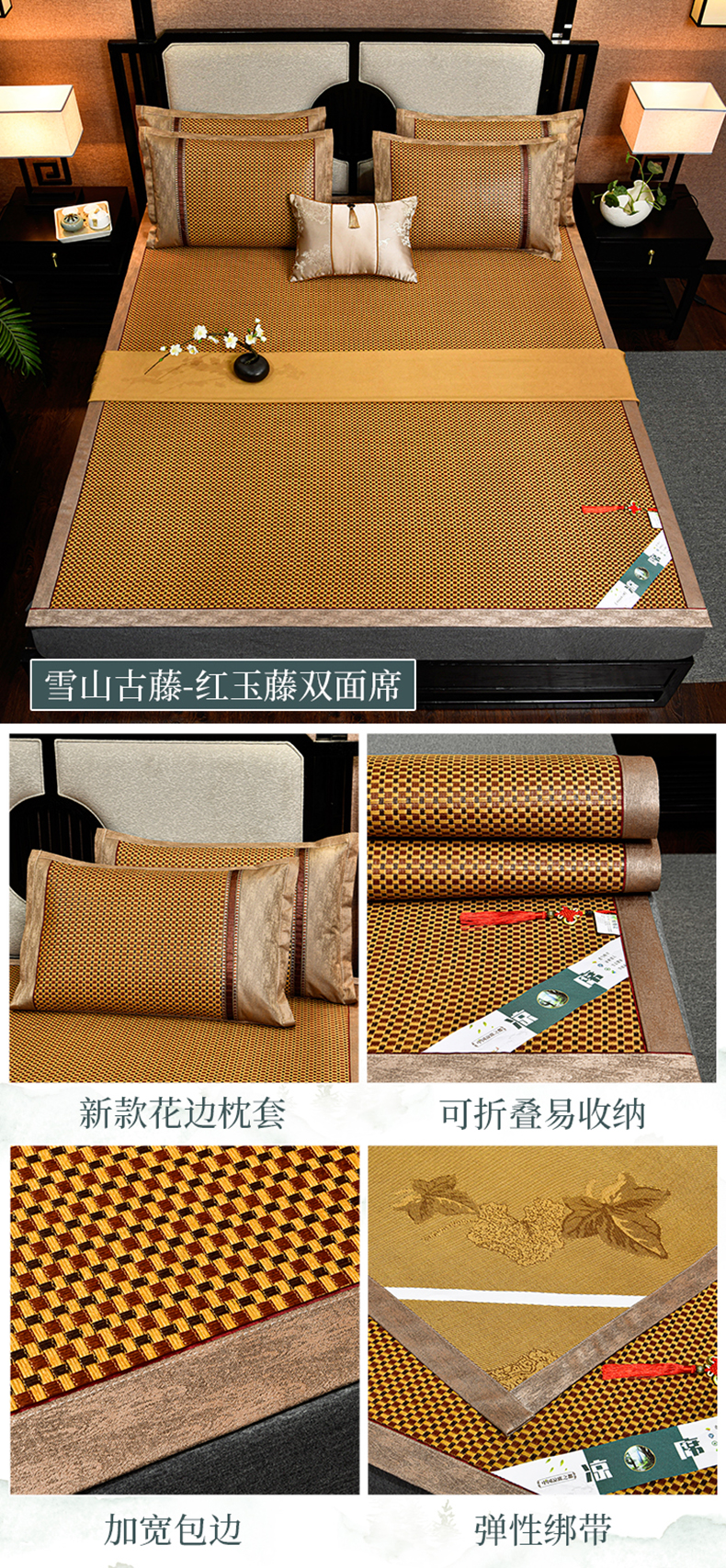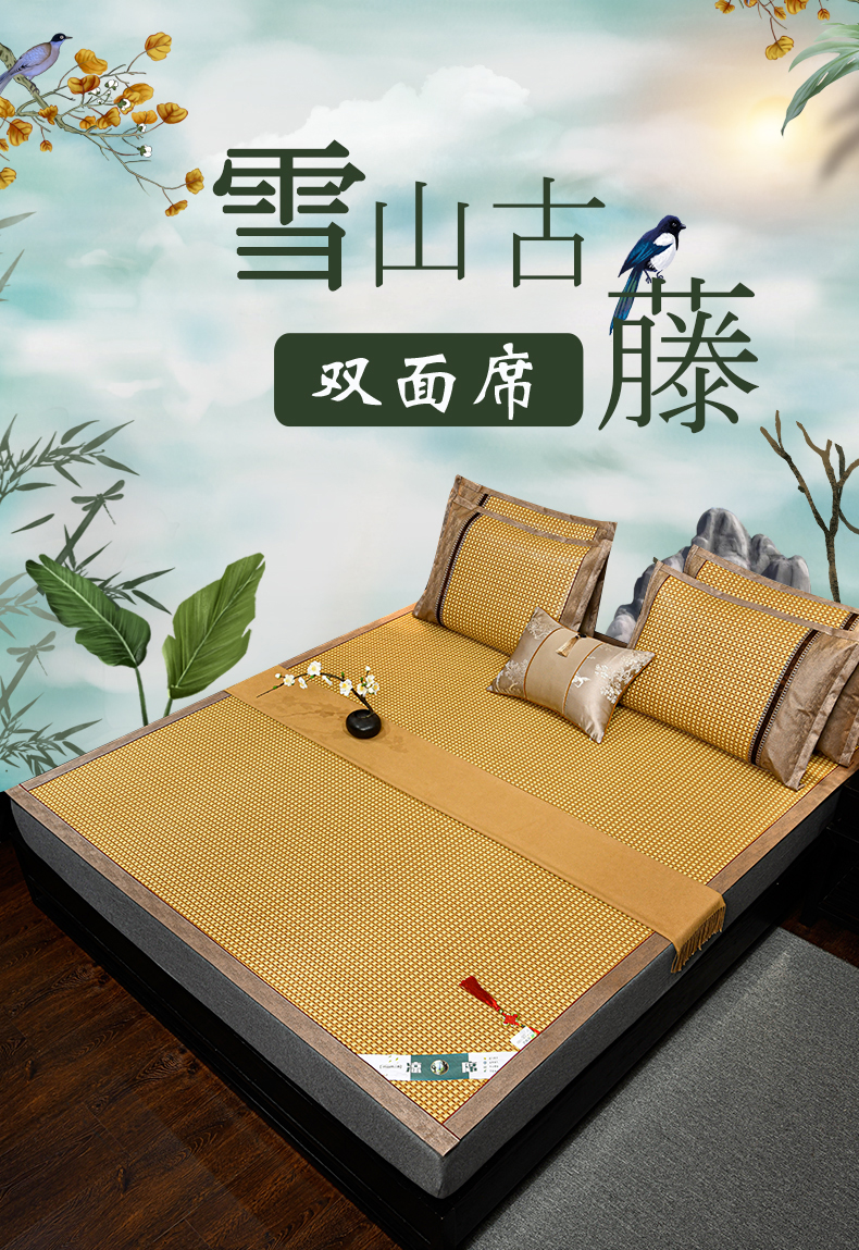 • 91家纺网 家纺一手货源 找家纺 小牛席业 2026新款雪山古藤-双面席系列凉席藤席冰藤双面席冰丝席竹席凉席空调席草席三件套 雪山古藤-黄古藤双面席