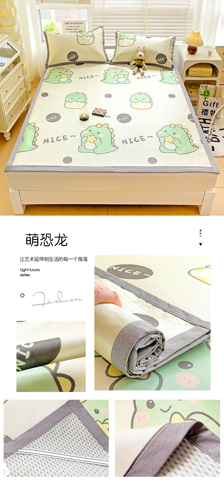 商品名称:金盛纺 2025新款A类数码印花冰丝席-床席款萌恐龙-床席款
