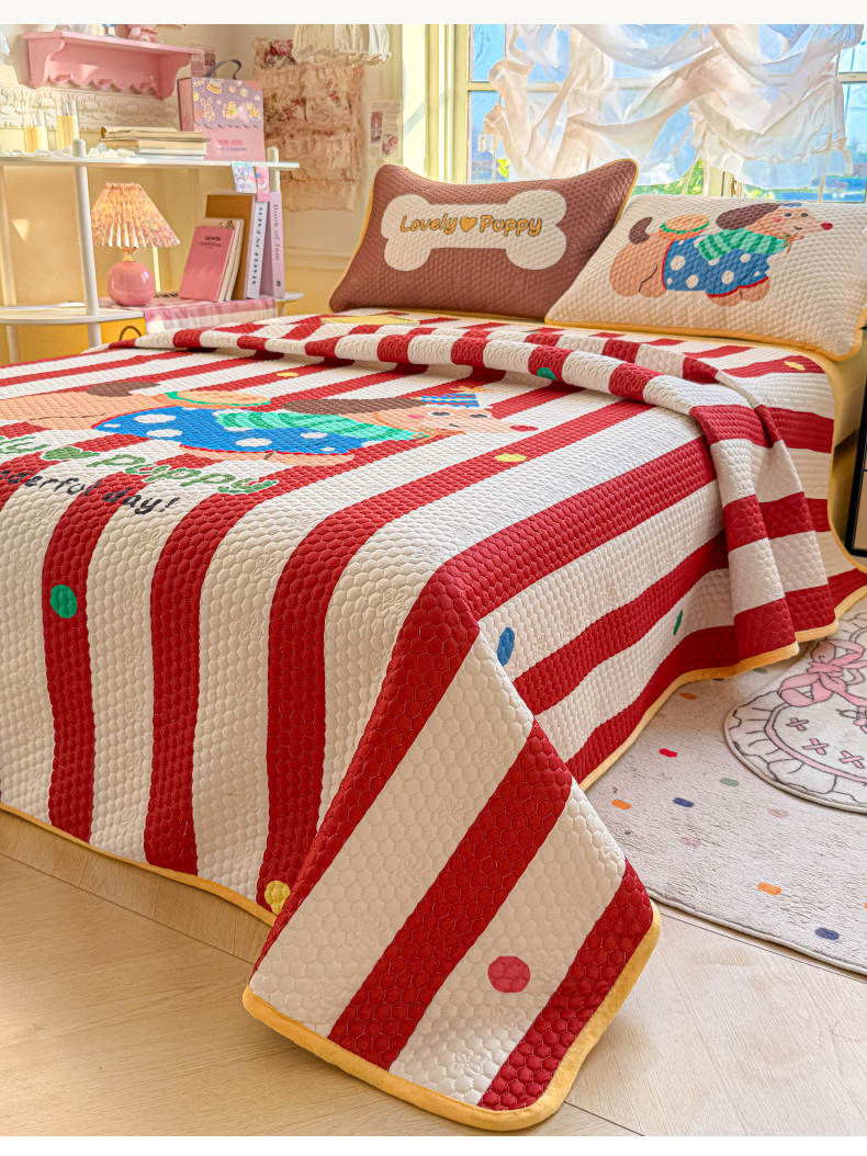当前位置: 91家纺网 > 商品网购 > 床品套件 > 四件套 > 其它四件套 > 梵克保罗 2026新款金豆豆床盖A类针织棉印花大版卡通床盖三四件套 鸿运当头