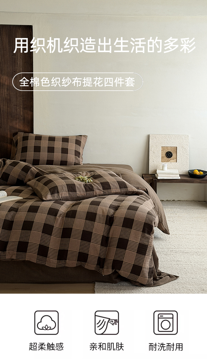 当前位置: 91家纺网 > 商品网购 > 床品套件 > 四件套 > 全棉普通四件套 > 山舍家居 2026春夏新款全棉纯棉色织纱布提花四件套 乍欢