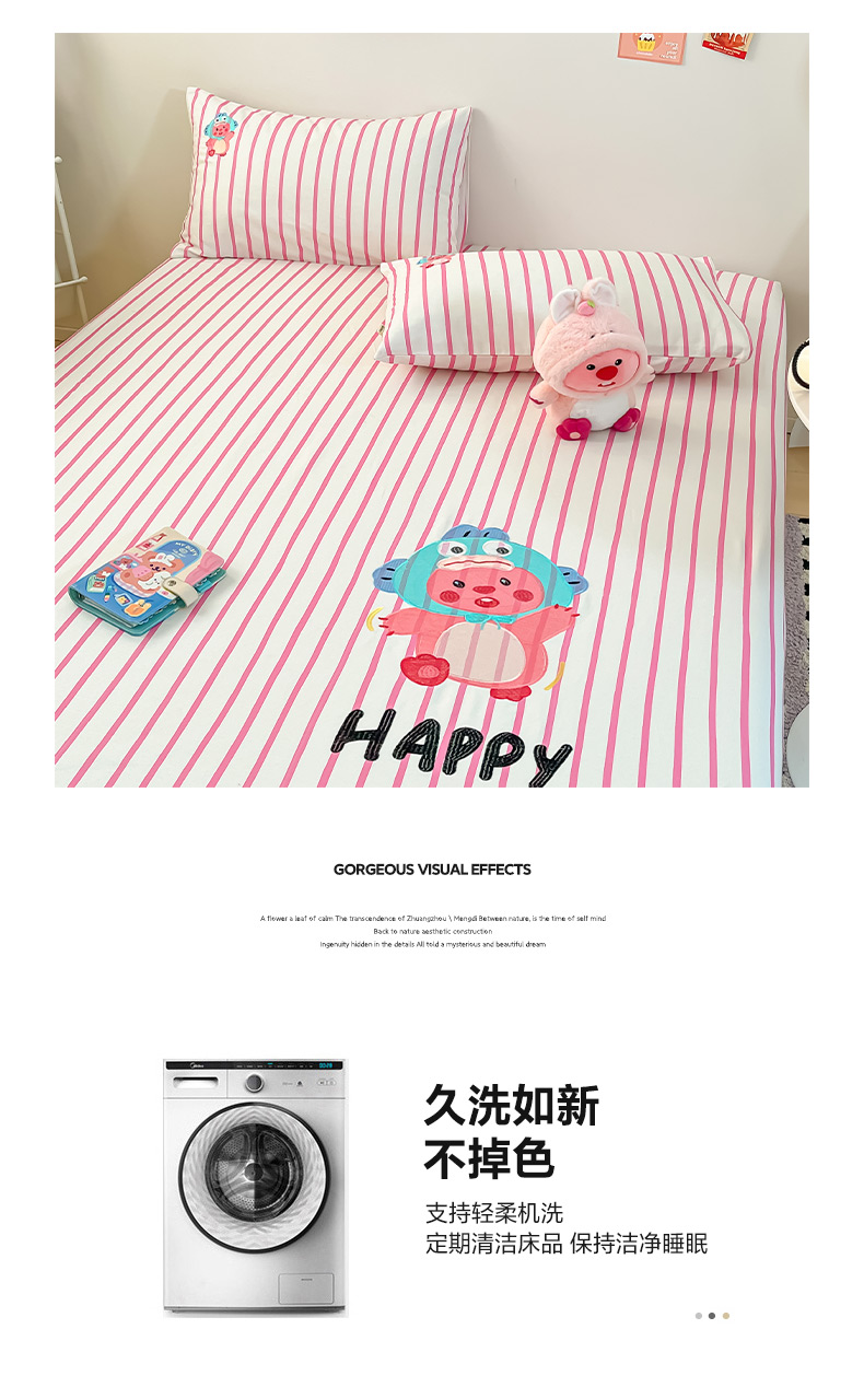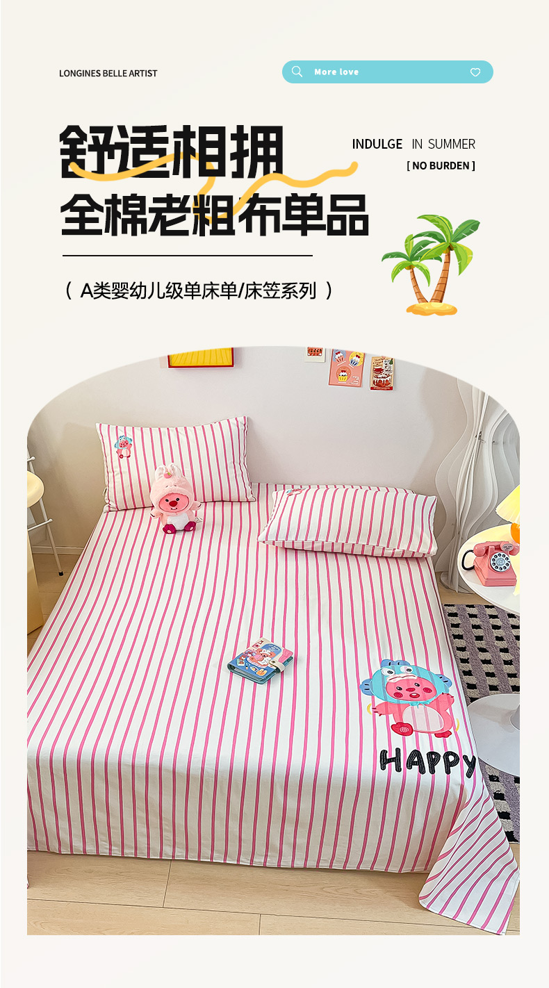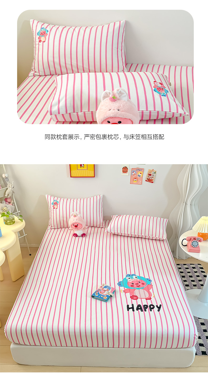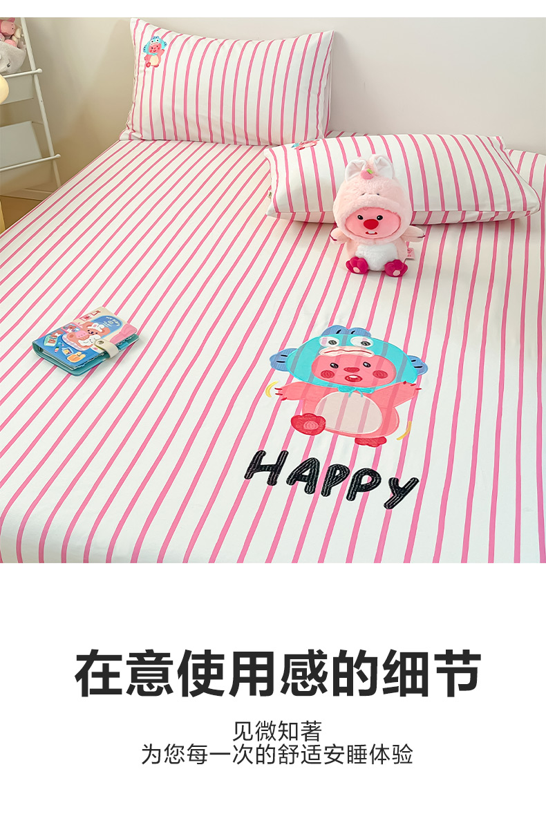 商品名称:雅居纺家纺 2026新款全棉绣花A类老粗布床笠单件床笠单品凉席席子 老粗布-小海狸-粉