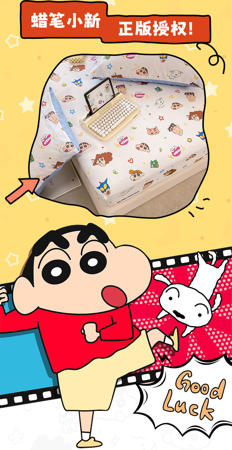 • 91家纺网 家纺一手货源 找家纺 博雅 2026新款蜡笔小新正版授权全棉纯棉小版单床笠床笠单件 小版-小新格子屋