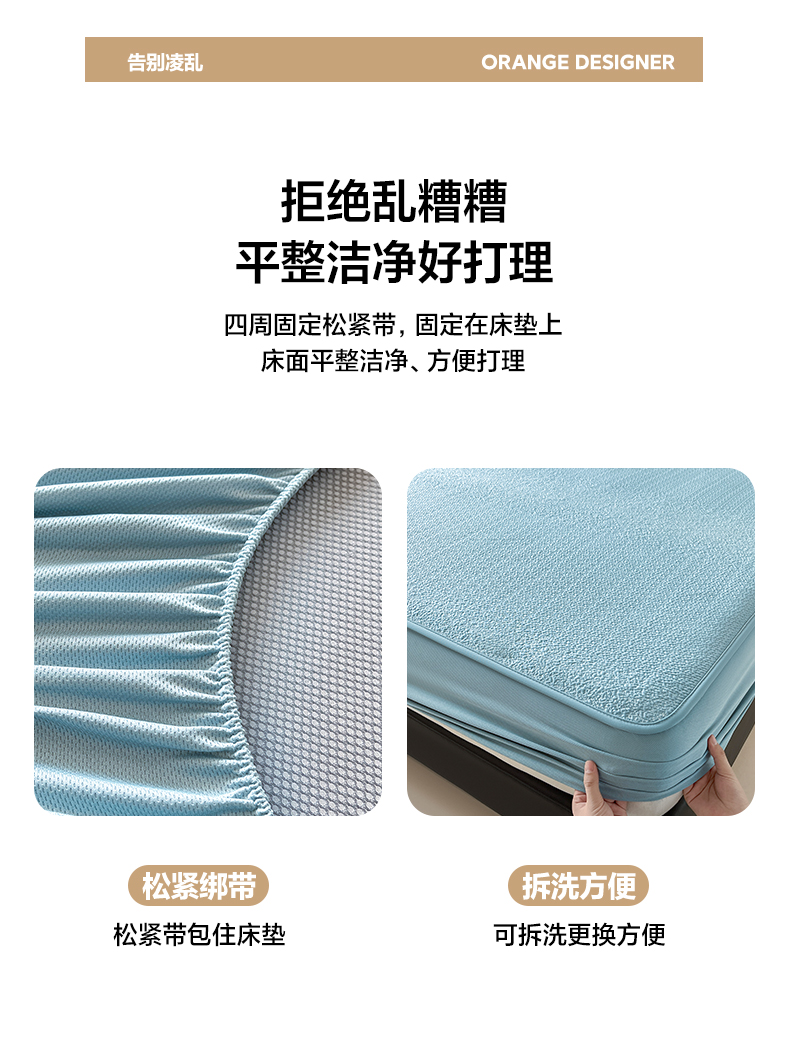 (总)雅居纺家纺 2022新款华夫格花边款四件套,梦幻蓝,橙色,纯白,米咖,浅粉,浅灰,优雅灰