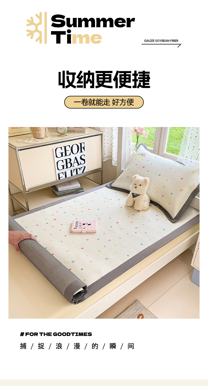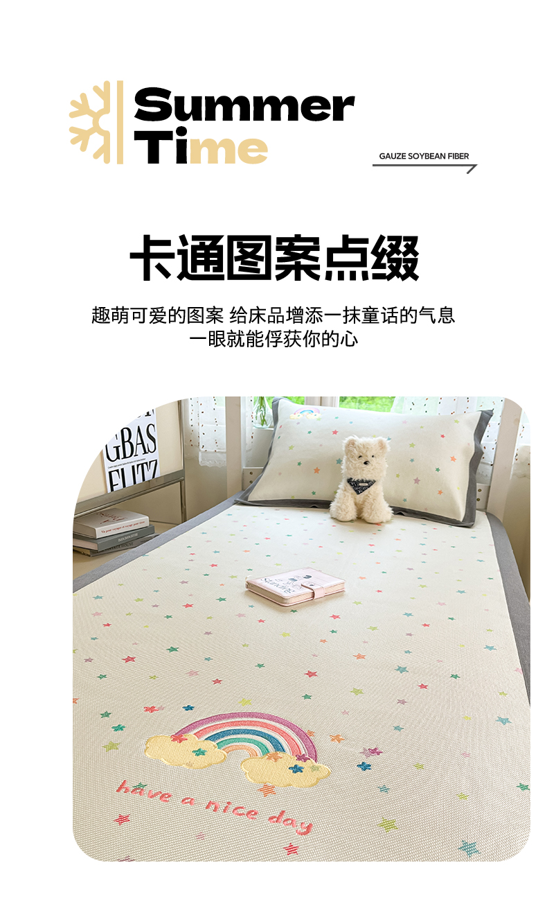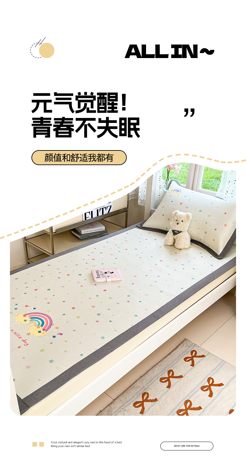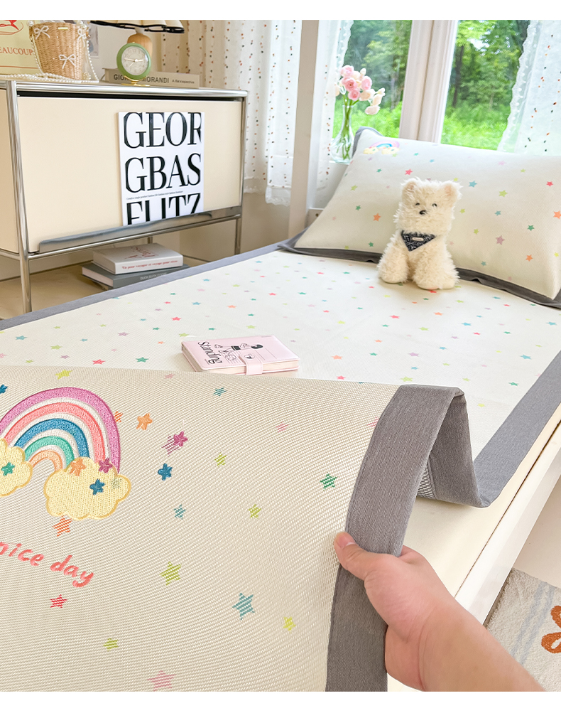 (总)雅居纺家纺 2026新款A类加厚三明治底绣花冰藤席学生宿舍床床单款凉席席子,冰淇淋萌狗,动感小狗,七彩虹,万事不南,小象家族,星星腊肠狗,幸运巴拉