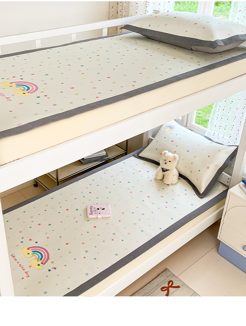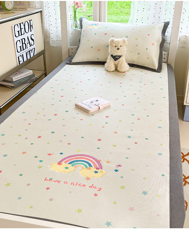 商品名称:雅居纺家纺 2026新款A类加厚三明治底绣花冰藤席学生宿舍床床单款凉席席子 七彩虹