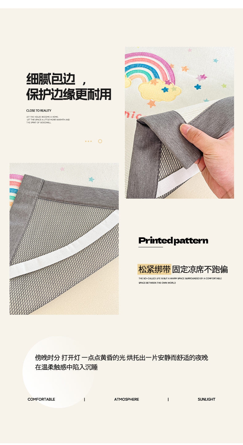 (总)雅居纺家纺 2026新款A类加厚三明治底提花小清新凉感席床笠款凉席席子,粉小兔,蝴蝶结猫咪,领结小猫,平安熊猫,山茶花,太空星球,晚安小狗,小熊熊,星星小熊,悠闲花园