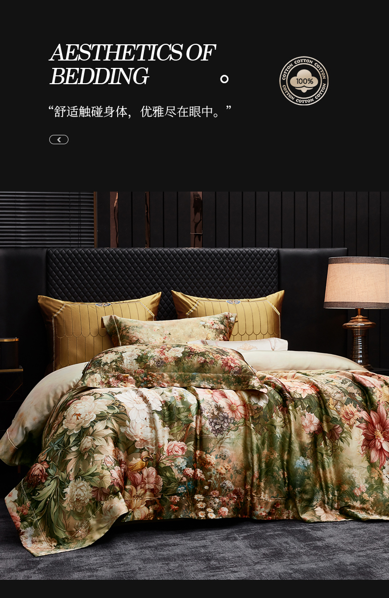 (总)至爱今生 2026新款数码印花长绒棉四件套-缦花礼赞,缦花礼赞