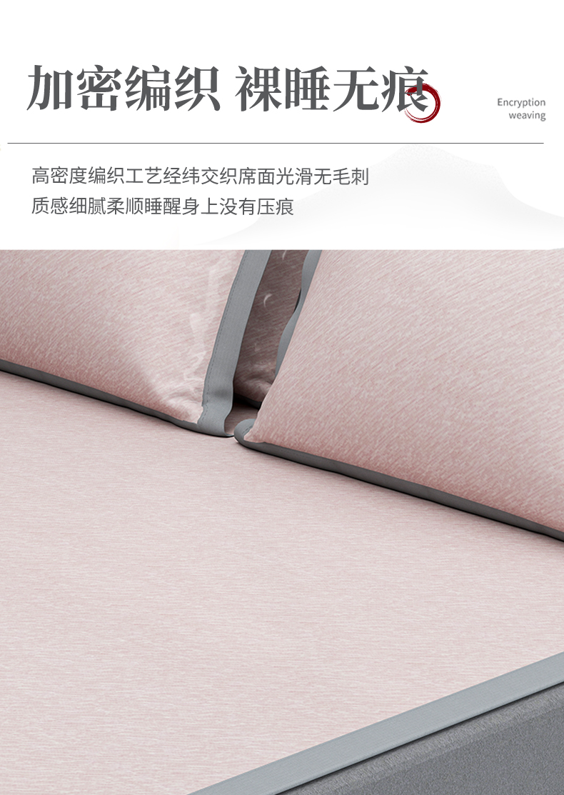 (总)2023新款超精密冰丝席-小斜纹系列-床笠款藤席凉席竹席,粉色,蓝色,绿色,银灰