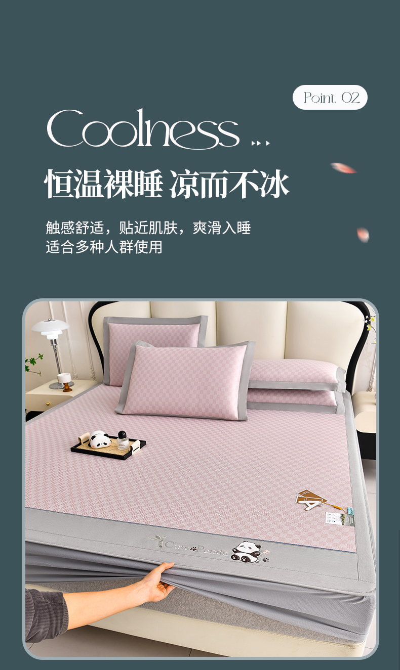 (总)小牛席业 2026新款棋盘格-熊猫凉感冰丝席凉席席子系列(床笠款)