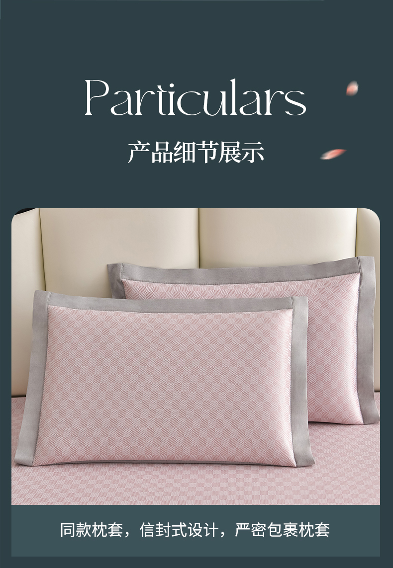 (总)小牛席业 2026新款【实拍风格】双PE高凉感-迪恩玫瑰提花冰丝席(床笠款)凉席竹席藤席冰藤席乳胶席豆豆席,粉色,灰色,蓝色,香槟