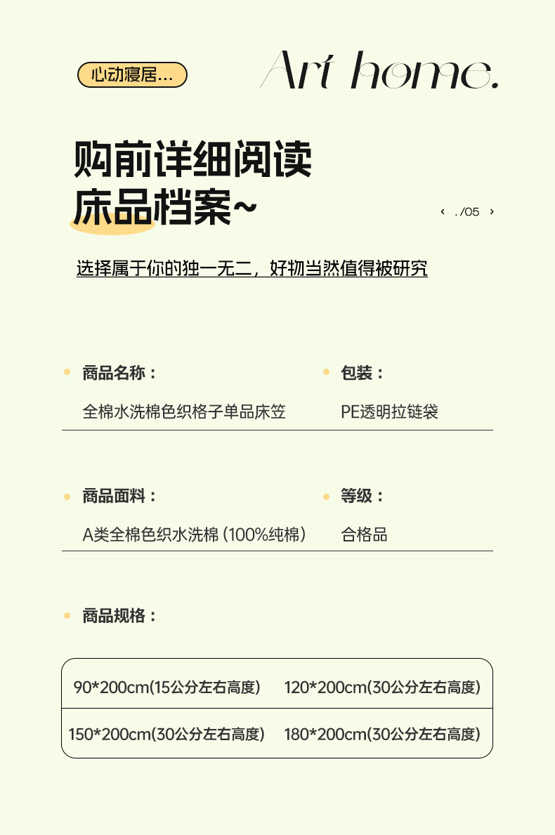 商品名称:六巷胡同 2026新款A类全棉纯棉水洗棉色织格子单品床笠 床笠单件 巷往-蓝格
