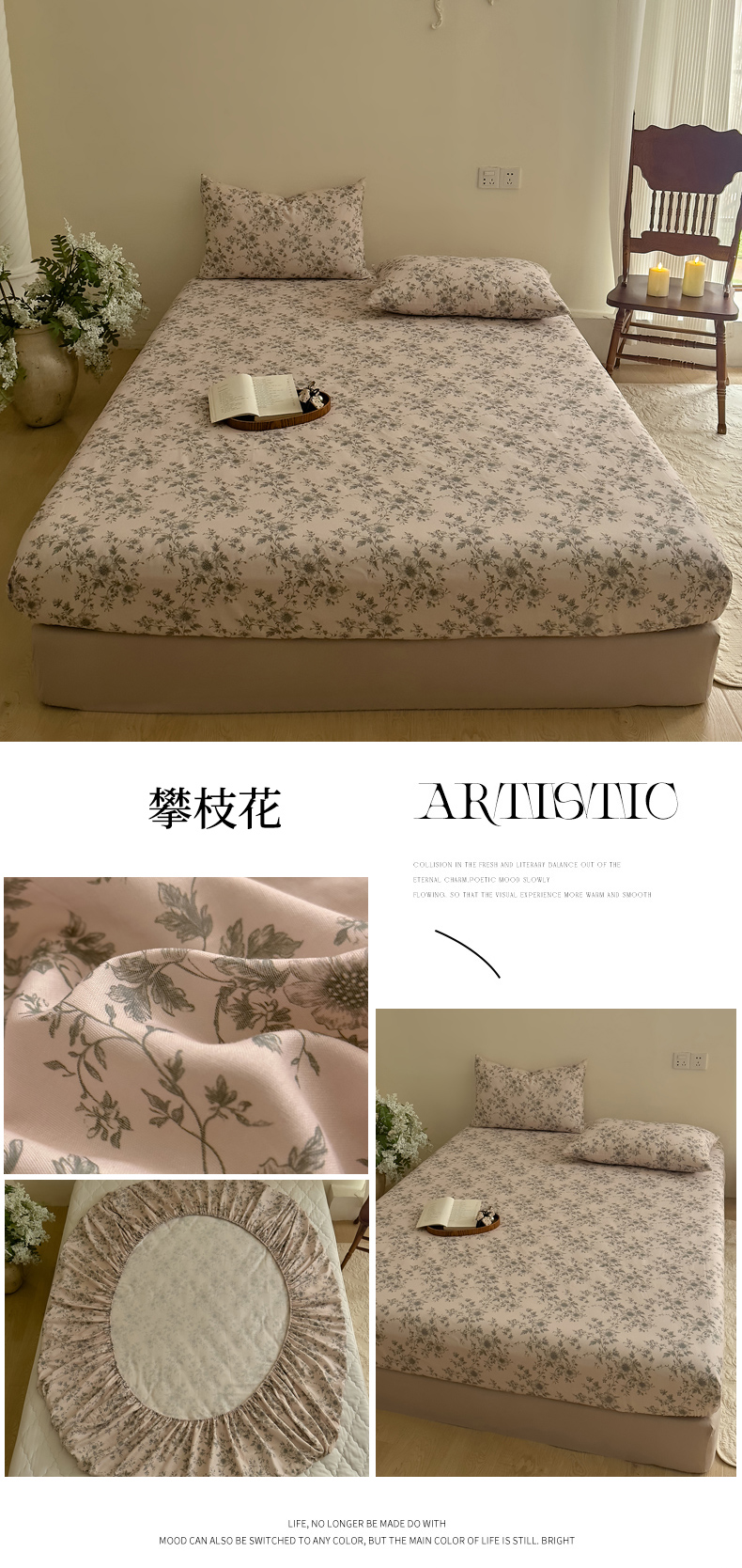 (总)DoDo 兜兜 2026新款全棉纯棉复古双层纱单品床笠系列(可定做尺寸),攀枝花,绿色,眠香铺,墨蝶,浅茶灰,青竹漫-灰,青竹漫-米,深绿色,睡花间,杏仁色,烟灰色,叶语-灰