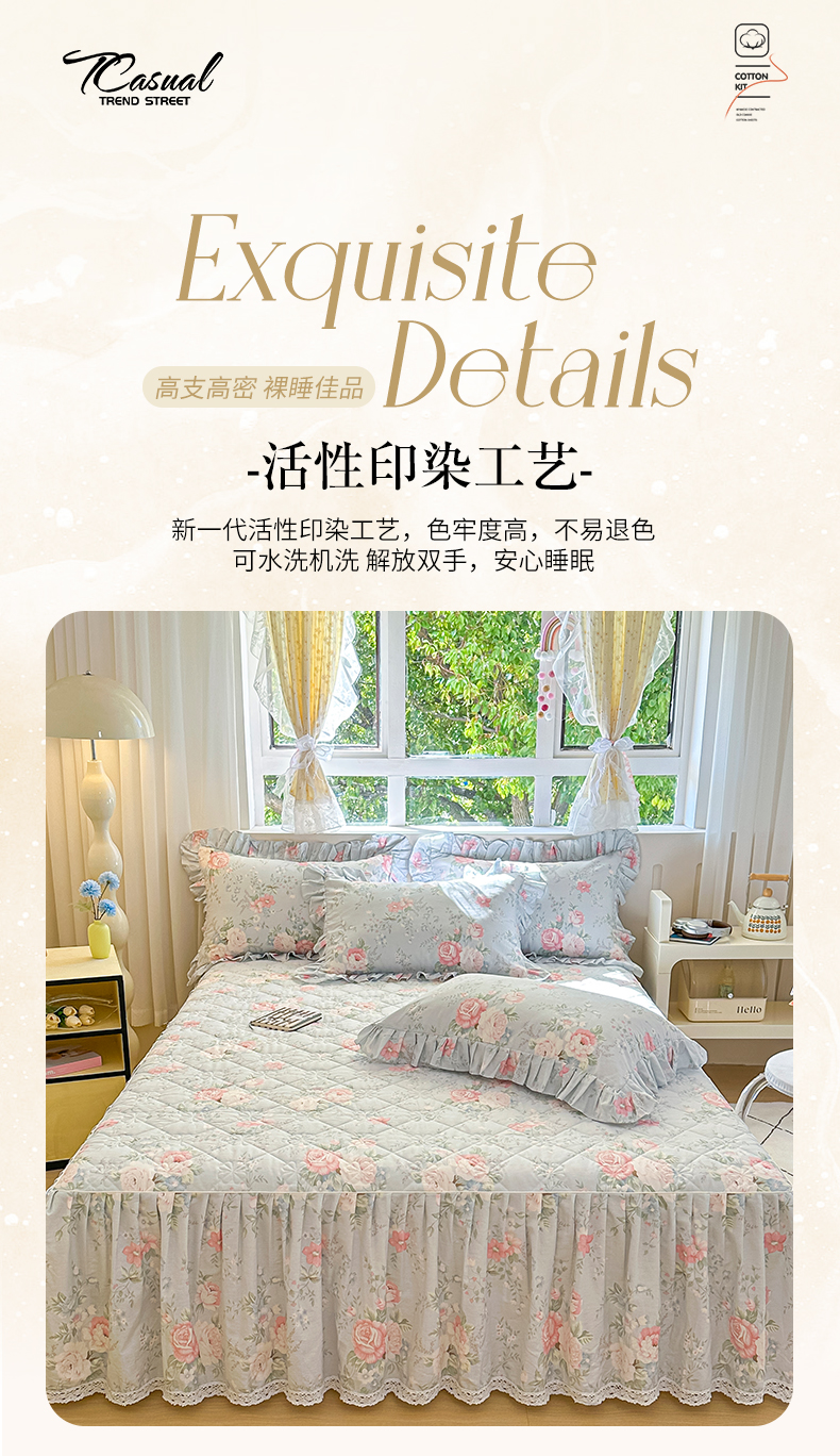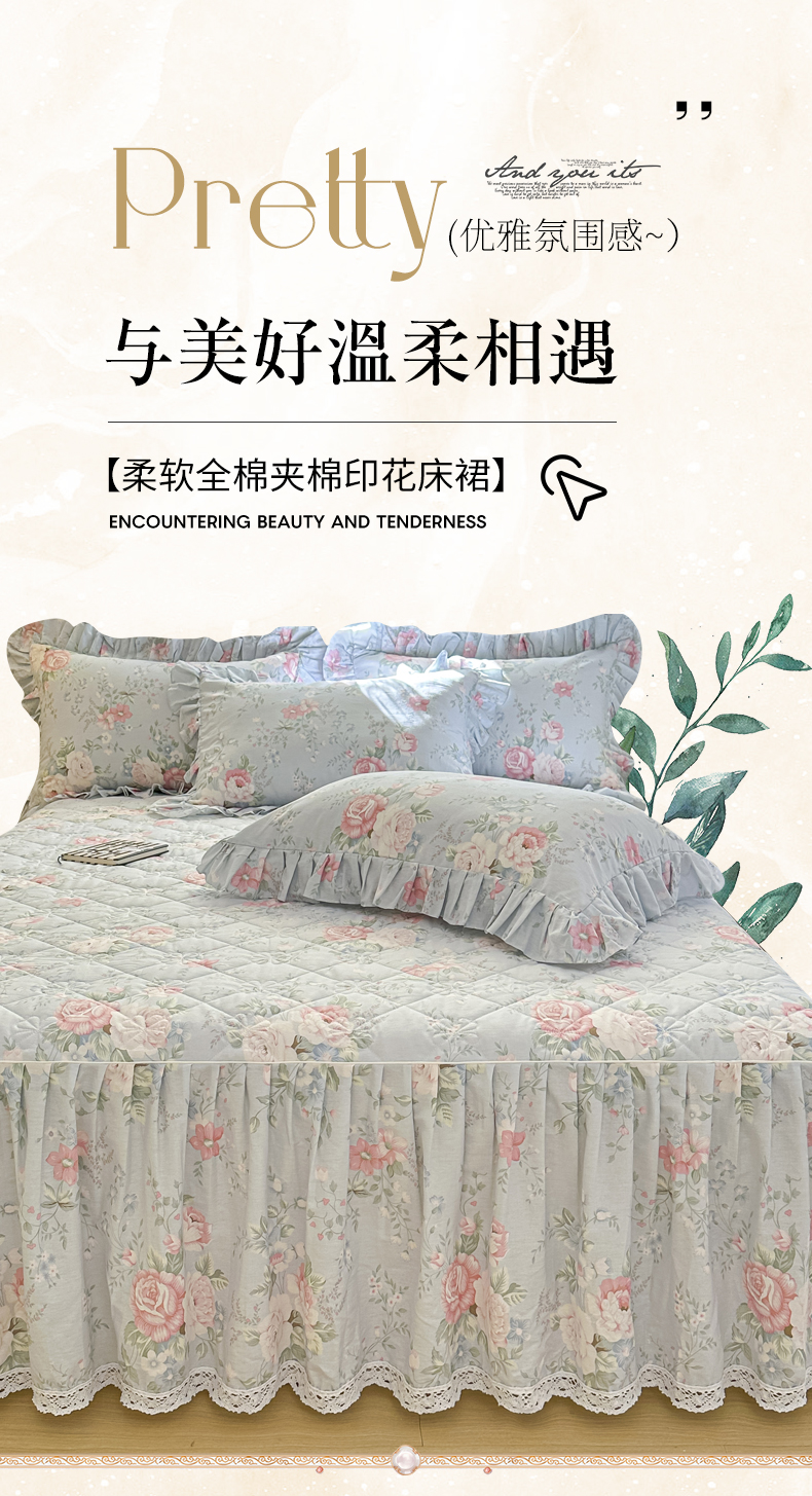 (总)忘忧草 2026春夏新款全棉纯棉夹棉印花床裙床裙单件,花疏影,花仙子,蔷薇花影,苏林-紫,甜桔小兔,雾飞花,烟笼蔷薇,柏林花涧,花颜悦色,华庭庄园-蓝,华庭庄园-米,可妮露,轻婉花语,云裳花谷,云溪之境