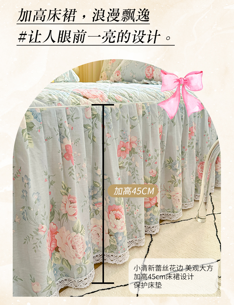 (总)忘忧草 2025亲肤水洗棉夹棉床裙--小清新系列,安娜花园,蝶恋花,蝴蝶结,郁金香,茶艺师,陌上花开,心动兔兔