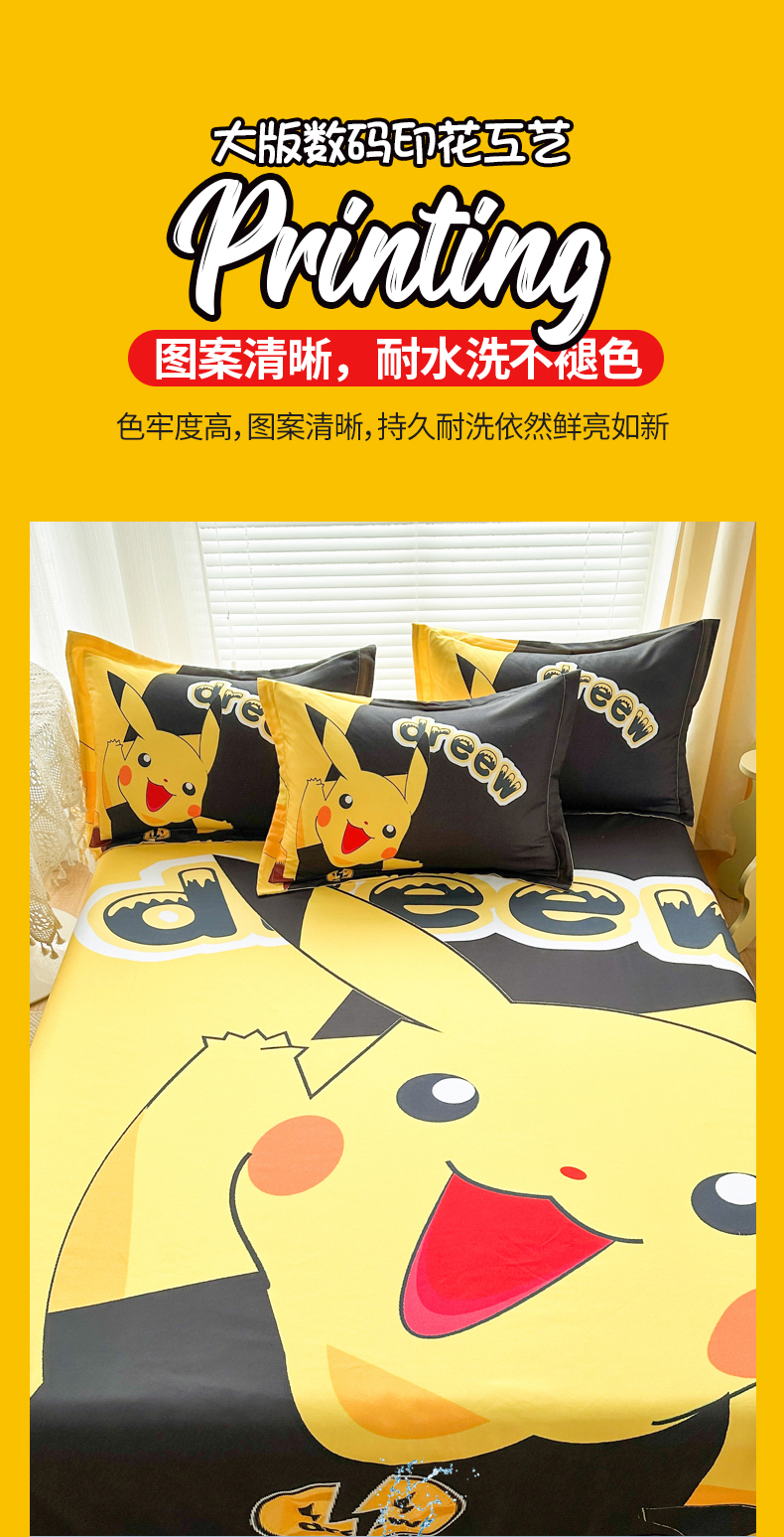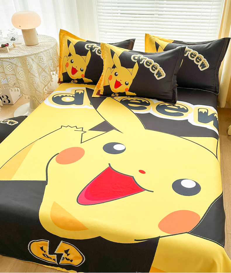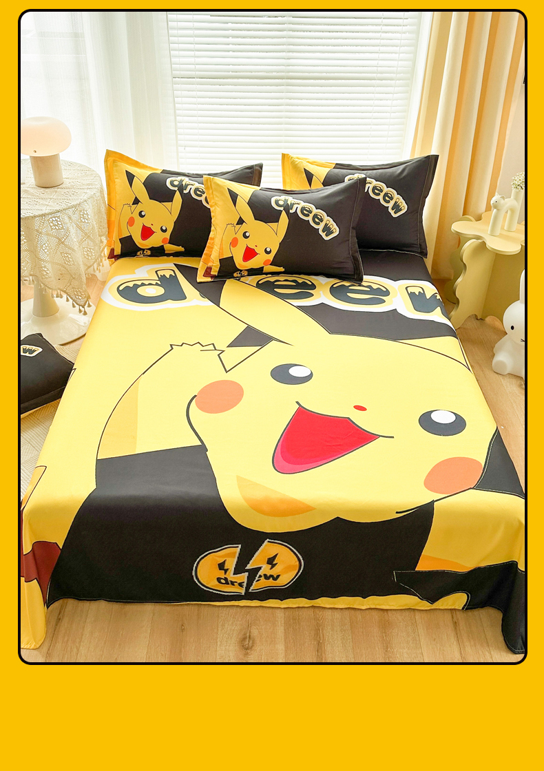 • 91家纺网 家纺一手货源 找家纺 一电 2026新款卡通床单单件被单学生宿舍被罩三件套单人儿童上下床床单-磨毛床单 第一批 闪电皮卡丘