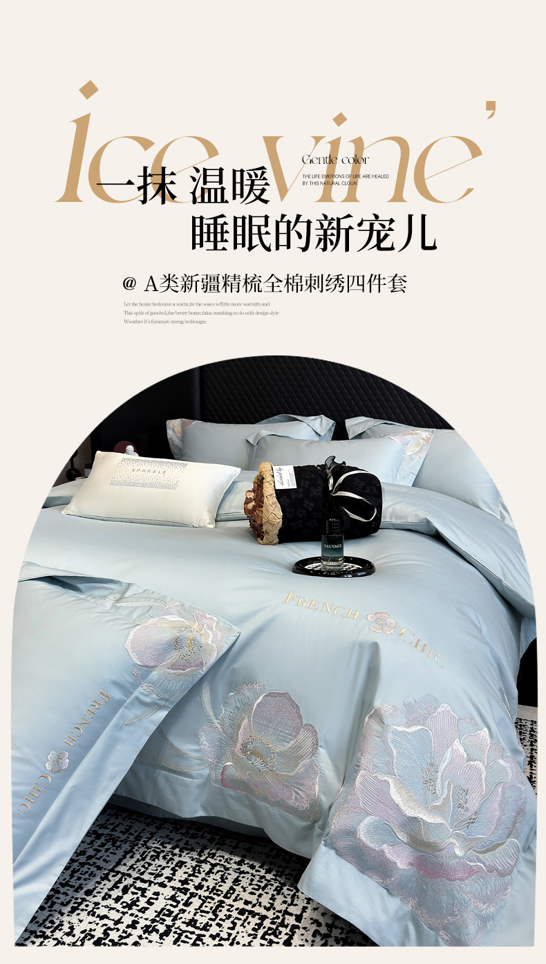 当前位置: 91家纺网 > 商品网购 > 床品套件 > 四件套 > 全棉普通四件套 > (总)星蕴家纺 2026新款新疆全棉刺绣四件套-黛尔【高档礼盒包装】
