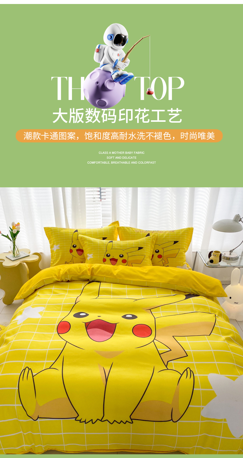 • 91家纺网 家纺一手货源 找家纺 一电 2026新款卡通被套单件被罩男女儿童学生宿舍单人被单男孩卡幼儿园单人被罩-2.磨毛被套 网红皮卡丘