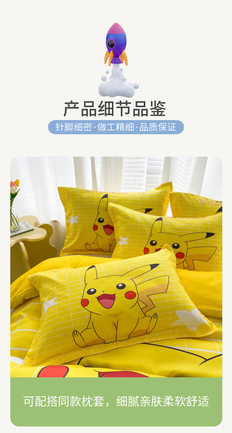 当前位置: 91家纺网 > 商品网购 > 床上用品 > 被套 > 一电 2026新款卡通被套单件被罩男女儿童学生宿舍单人被单男孩卡幼儿园单人被罩-2.磨毛被套 网红皮卡丘