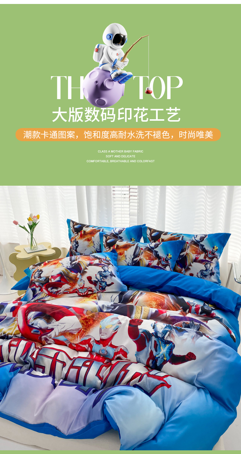 • 91家纺网 家纺一手货源 找家纺 一电 2026新款卡通被套单件被罩男女儿童学生宿舍单人被单男孩卡幼儿园单人被罩-1.磨毛被套 闪电奥特曼