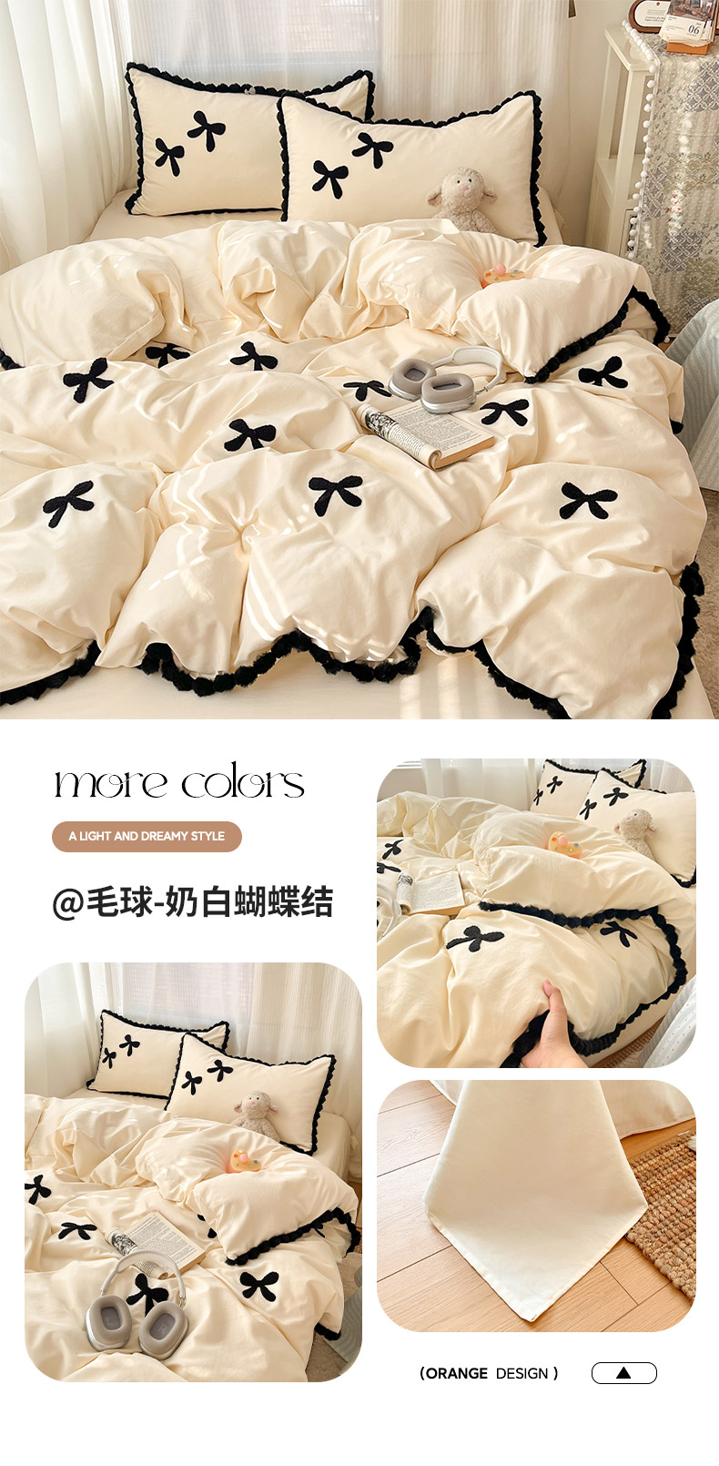 当前位置: 91家纺网 > 商品网购 > 床品套件 > 四件套 > 其它四件套 > 金阳光家纺 2026新款古法水洗仿棉毛球款四件套 毛球-紫色蝴蝶结