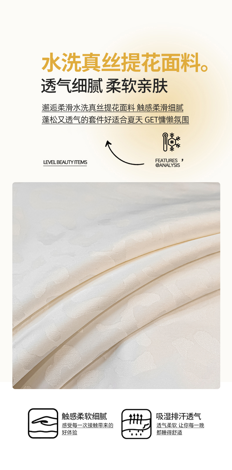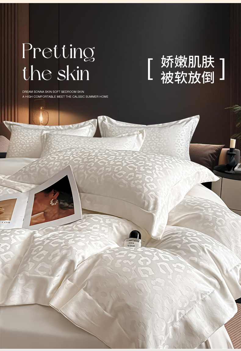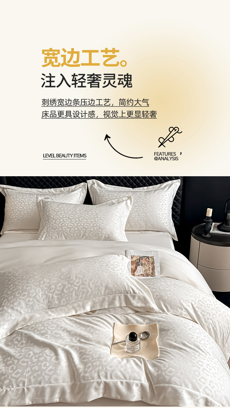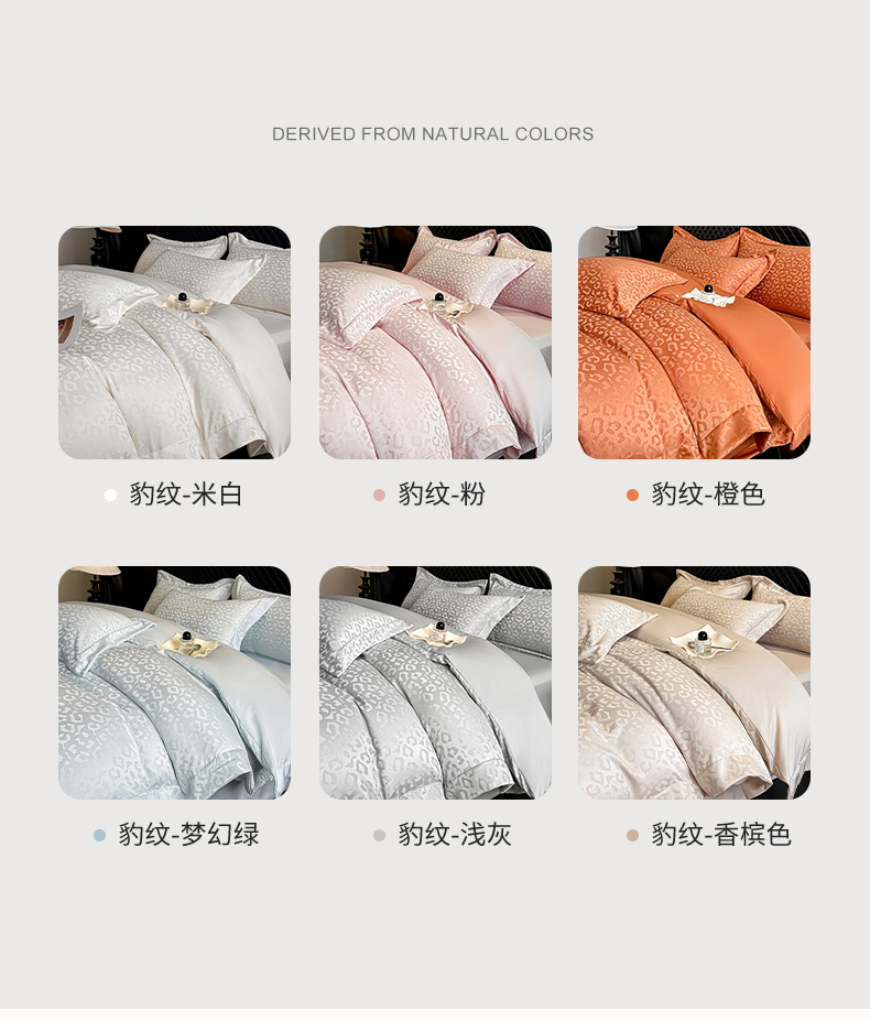 当前位置: 91家纺网 > 商品网购 > 床品套件 > 四件套 > 其它四件套 > 金阳光家纺 2026春夏新款A类水洗真丝天丝高奢提花豹纹四件套 豹纹-米白