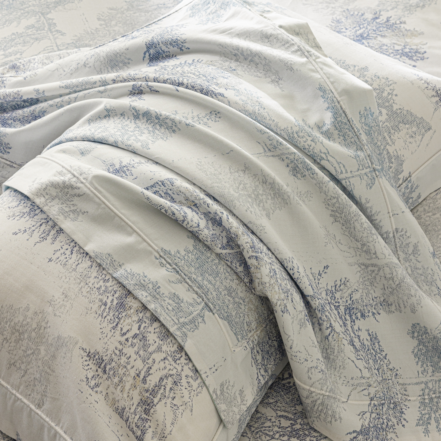 莱豫家纺 2026新款50s阿克苏长绒棉数码印花四件套 景泽蓝