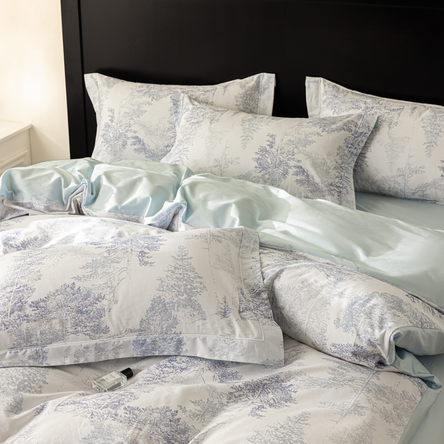 商品名称:莱豫家纺 2026新款50s阿克苏长绒棉数码印花四件套 景泽蓝