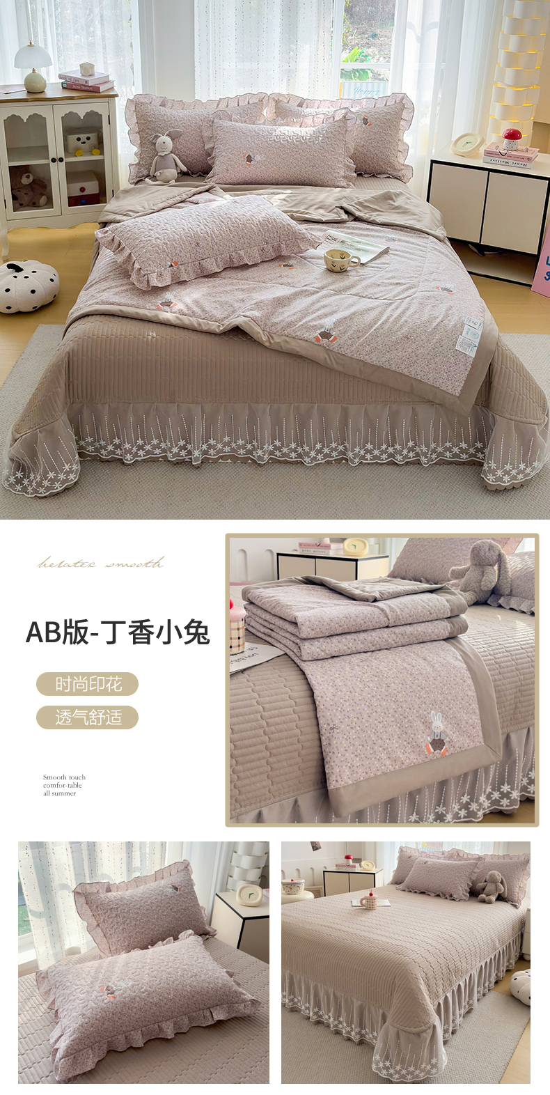 (总)艺慕家纺 2026新款夏被四件套,粉黛庄园,紫色樱桃,素影,咖色蝴蝶结,丁香小兔,薄荷绿,斑马乐园,丁香花,可爱熊仔,金盏花语,粉色樱花,春日花语,雾紫花蔓
