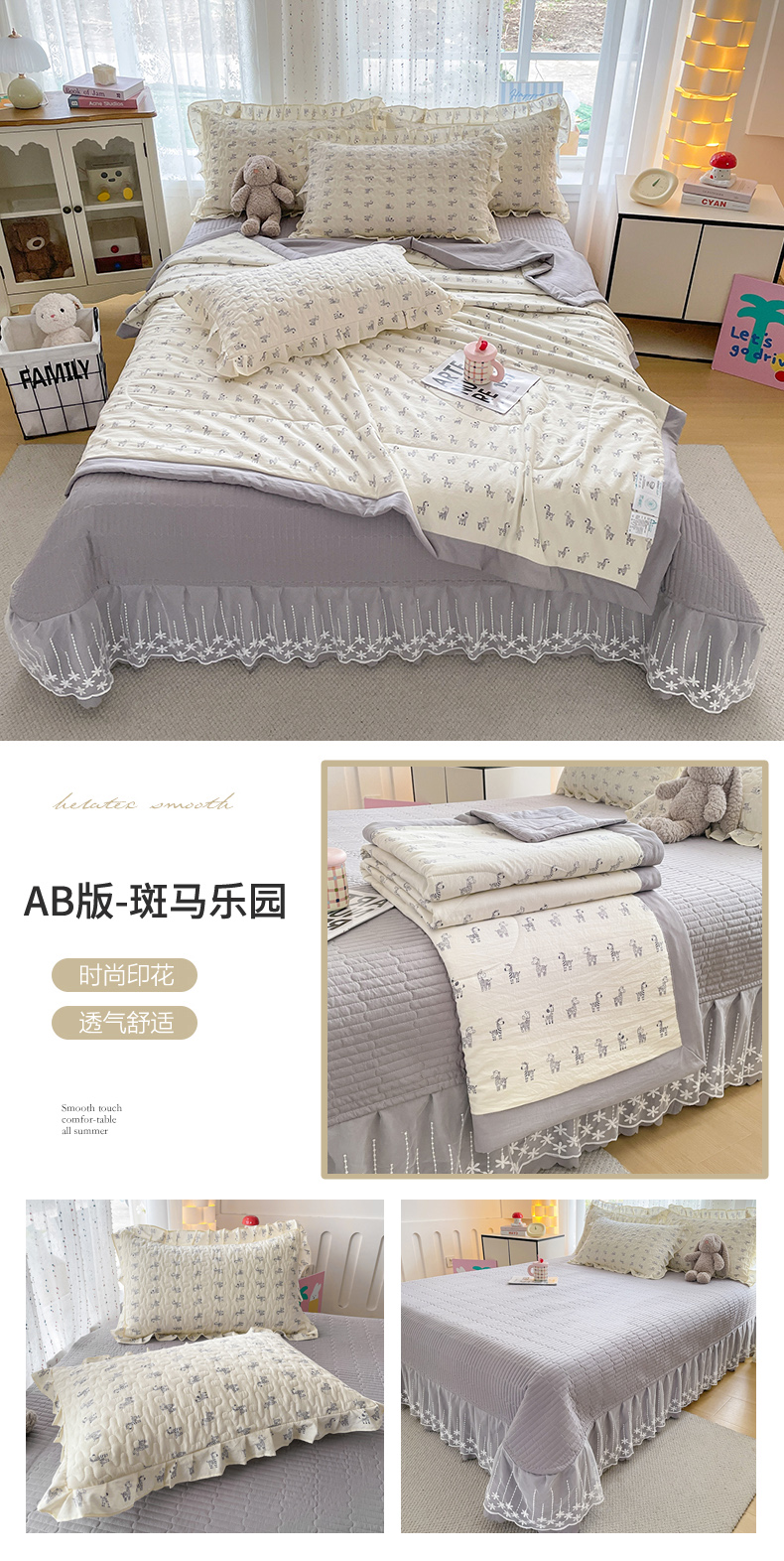 (总)艺慕家纺 2026新款AB版水洗棉印花夏被床盖四件套