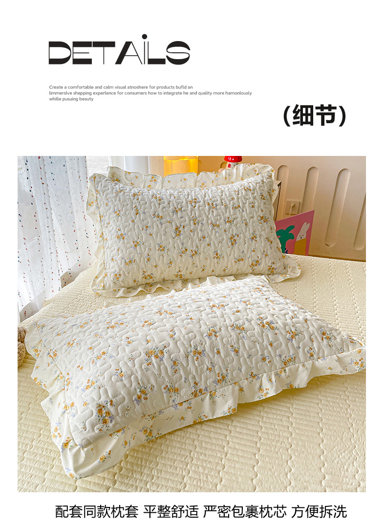 (总)艺慕 2025新款双层纱水洗棉麻蕾丝花边床盖,春意,粉色玫瑰,红豆,青花瓷,太阳花绿,屋顶花园,夕颜,夏日仙草,心动绿,萌兔子,花丛兔