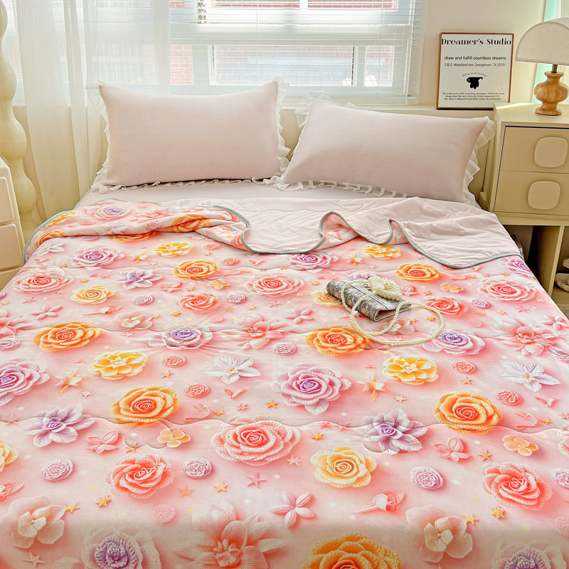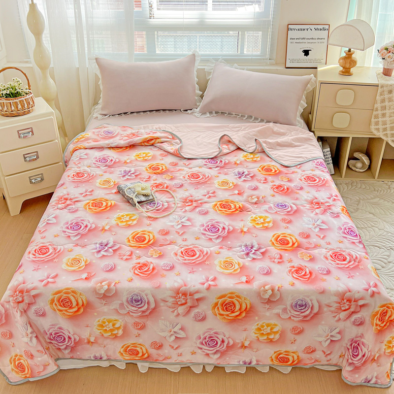 (总)栩裕纺织 2026新款(常年不断货)5D立体凉感丝夏被仿锦氨空调被冰淇淋夏凉被,繁花似锦,爱心玫瑰,浮雕花,乖乖兔,花儿朵朵,可爱萌熊,清凉西瓜,五彩缤纷,小花园