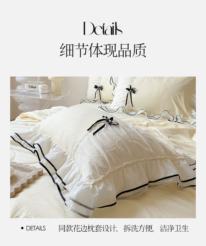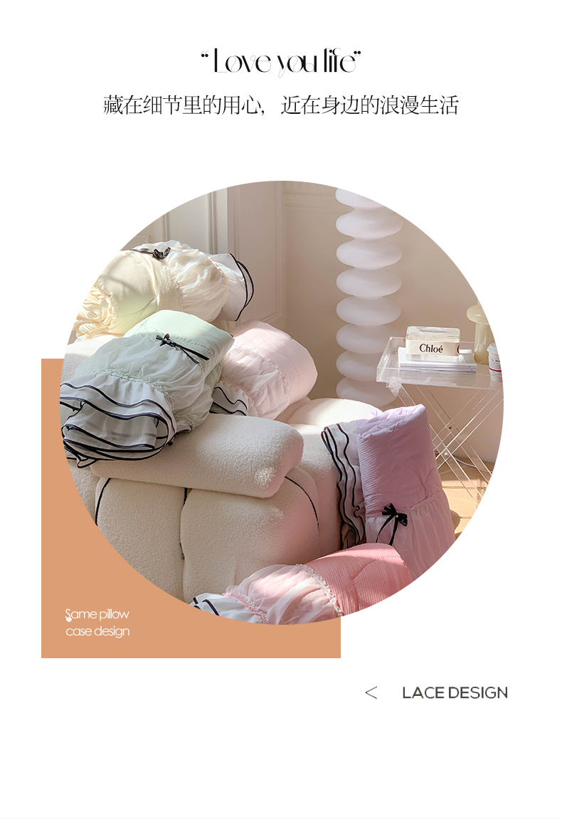 (总)吾欢心 2025新款小香风可可小姐系列花边四件套,可可奶茶绿,可可奶昔粉,可可柠檬黄,可可温柔紫,可可樱桃粉