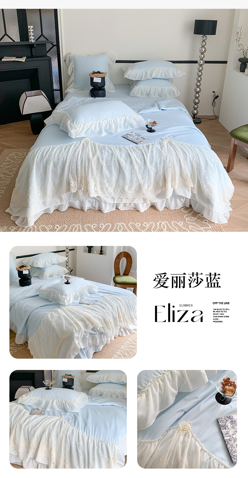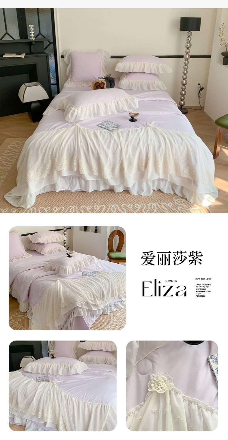 (总)吾欢心 2026新款A类法式花边爱丽莎床盖款夏被四件套,爱丽莎粉,爱丽莎白,爱丽莎黄,爱丽莎蓝,爱丽莎绿,爱丽莎紫