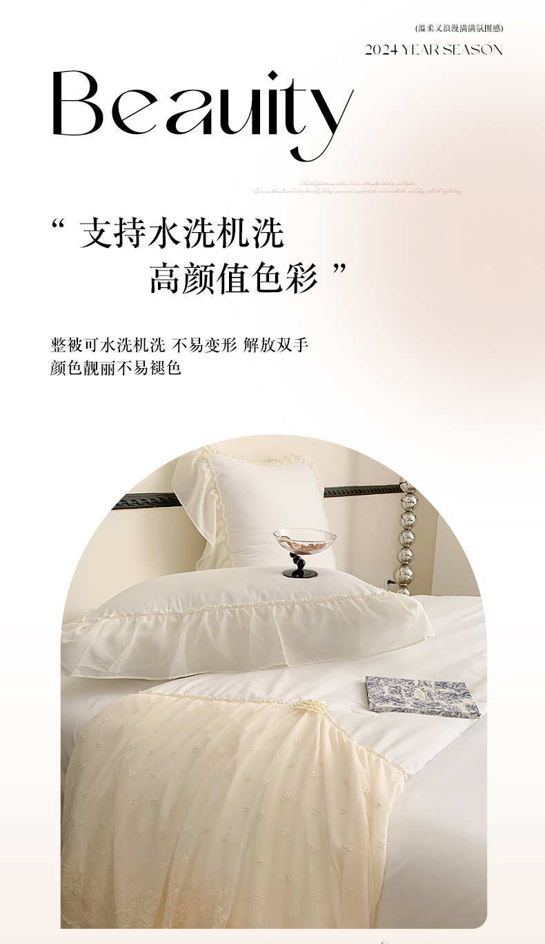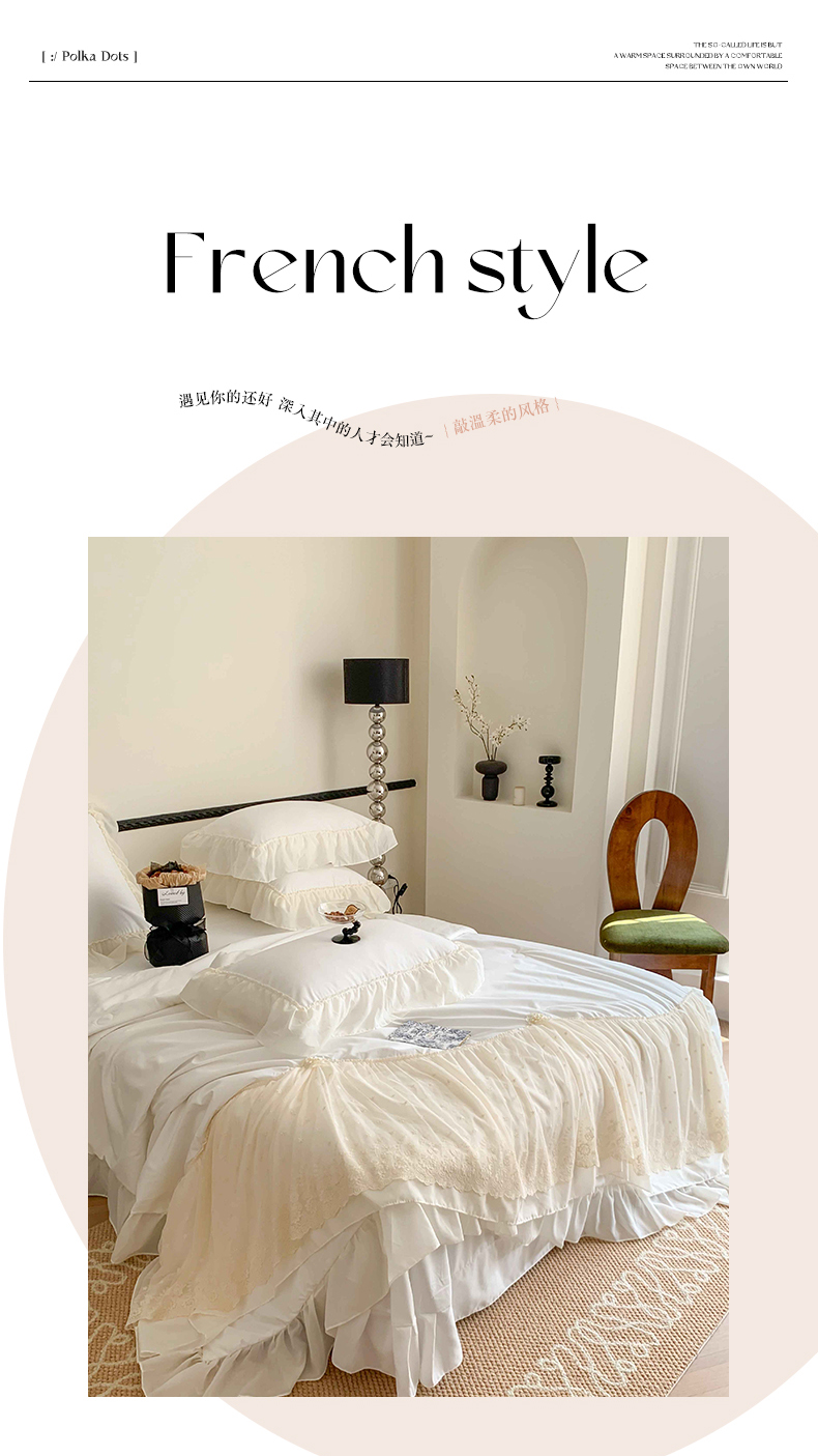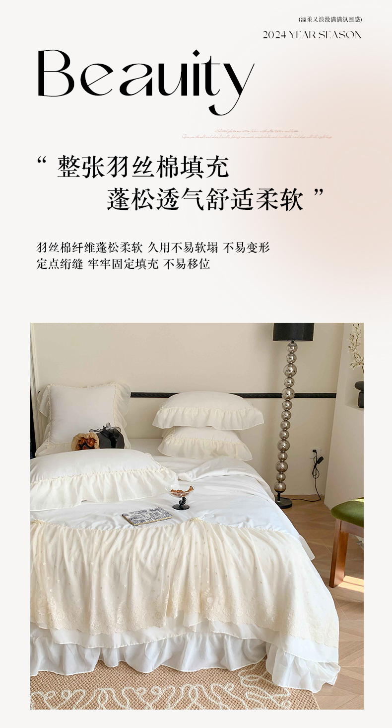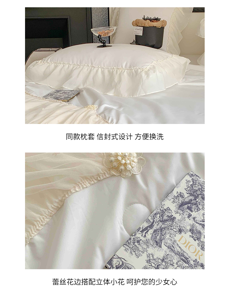 商品名称:吾欢心 2026新款A类法式花边爱丽莎夏被四件套 爱丽莎白