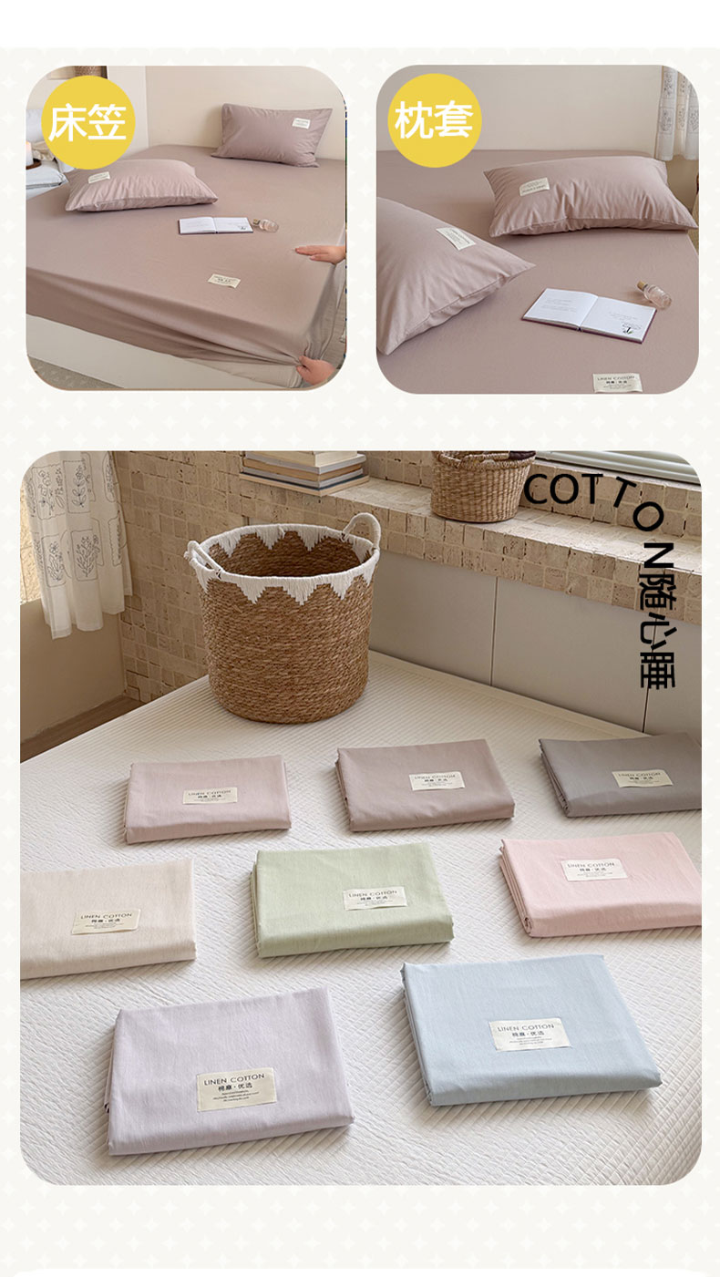 (总)桃子家居 2026新款A类纯棉水洗原生态棉麻纯色织标简约无印单品床单床笠系列,棉麻单品-本色,棉麻单品-苍绿,棉麻单品-麦咖,棉麻单品-蜜芽桔,棉麻单品-清灰,棉麻单品-水色兰,棉麻单品-檀粉,棉麻单品-远空紫